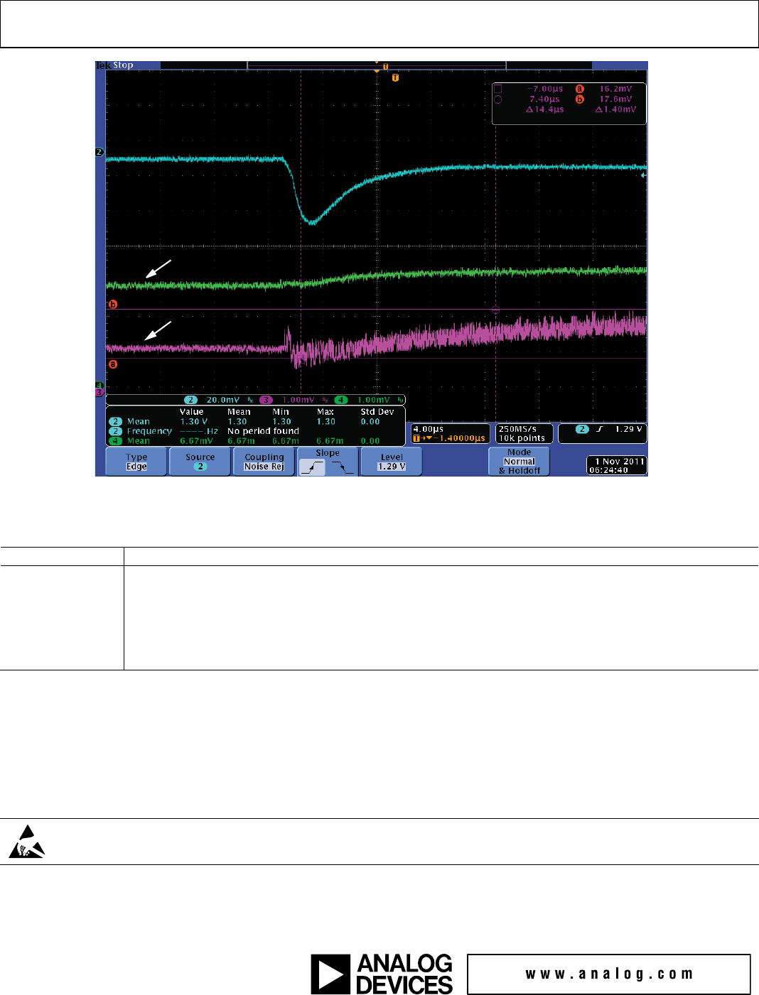 effects of transients on the 1.3 V analog supply. The evalua-