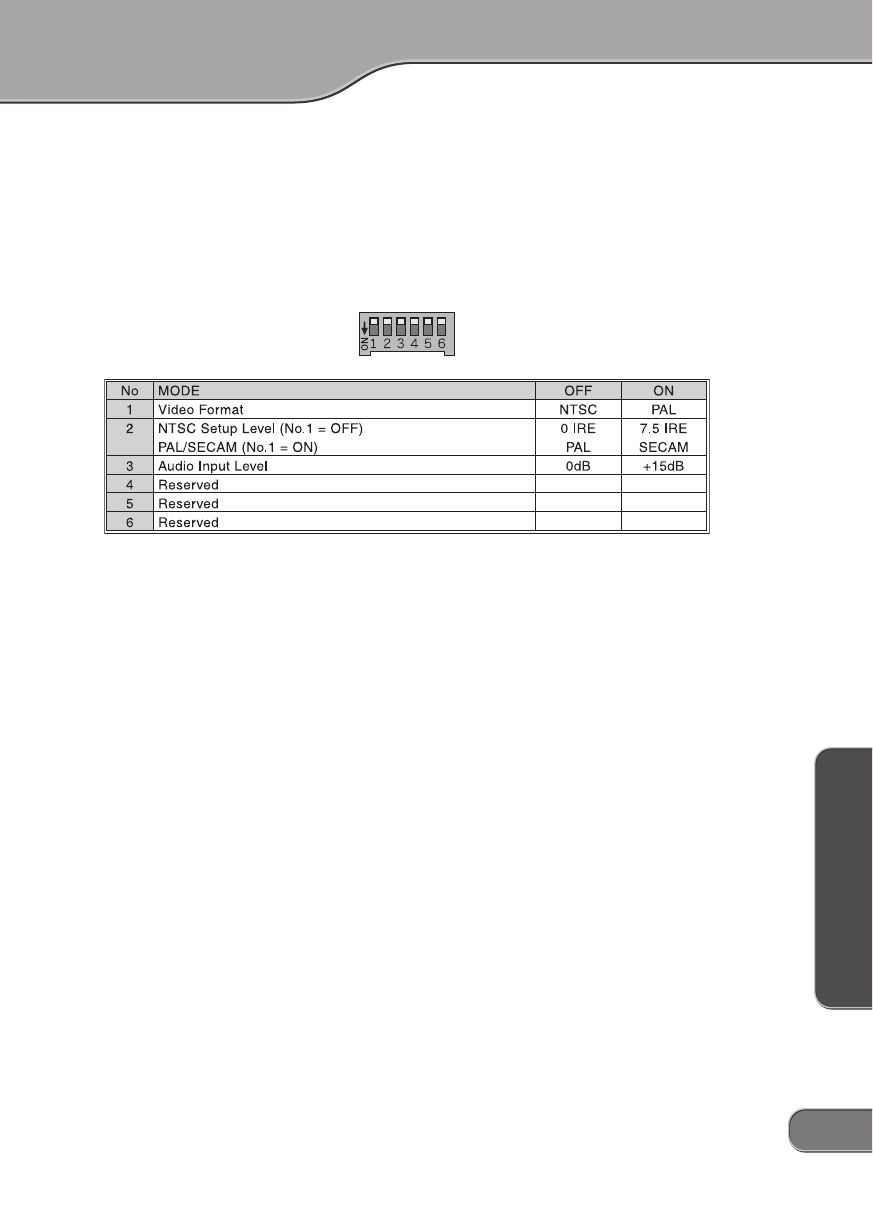 SECAM system, set No.1 switch to the ON (PAL) position and set No.2 switch to ON as well.
