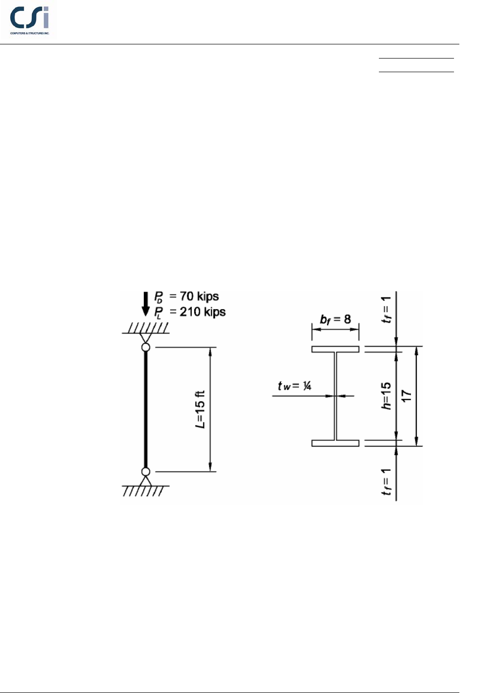 column shown below. An axial load of 70 kips (D) and 210 kips (L) is applied to