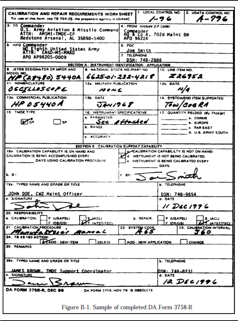 b. TB 750-25, Maintenance of Supplies and Equipment: Army Test, Measurement, and