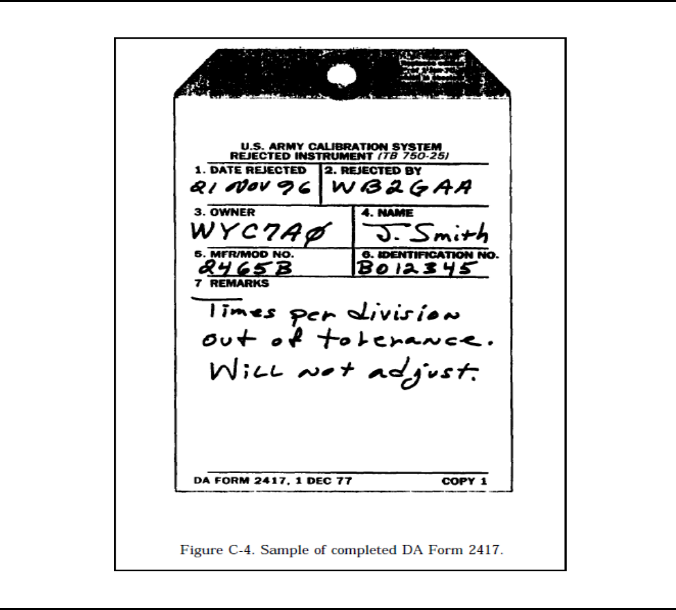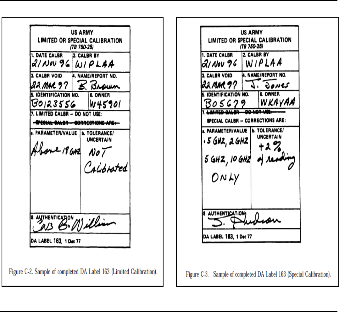 C-2. Sample of Completed DA Form 163 (Limited Calibration)