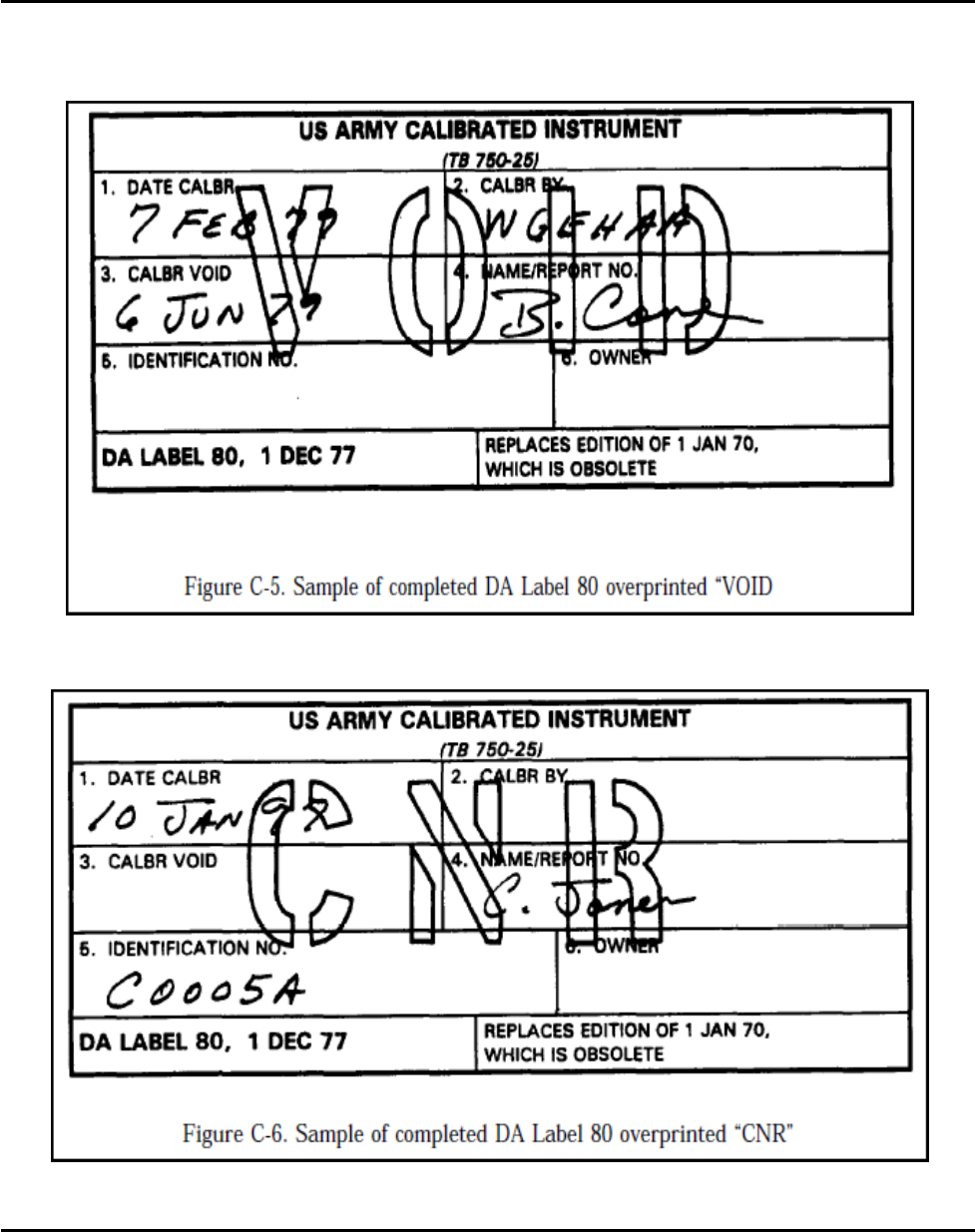 C-5. Sample of Completed DA Label 80 Overprinted “VOID”