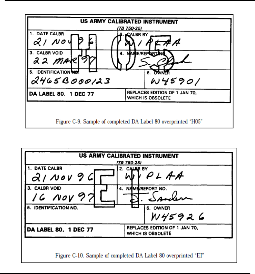 C-9. Sample of Completed DA Label 80 Overprinted “H05”