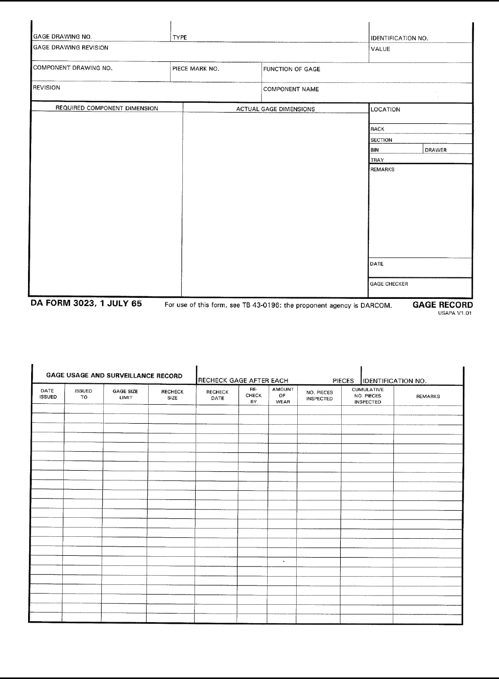 D. Instructions for Completion of Gauge Record (DA Form 3023)