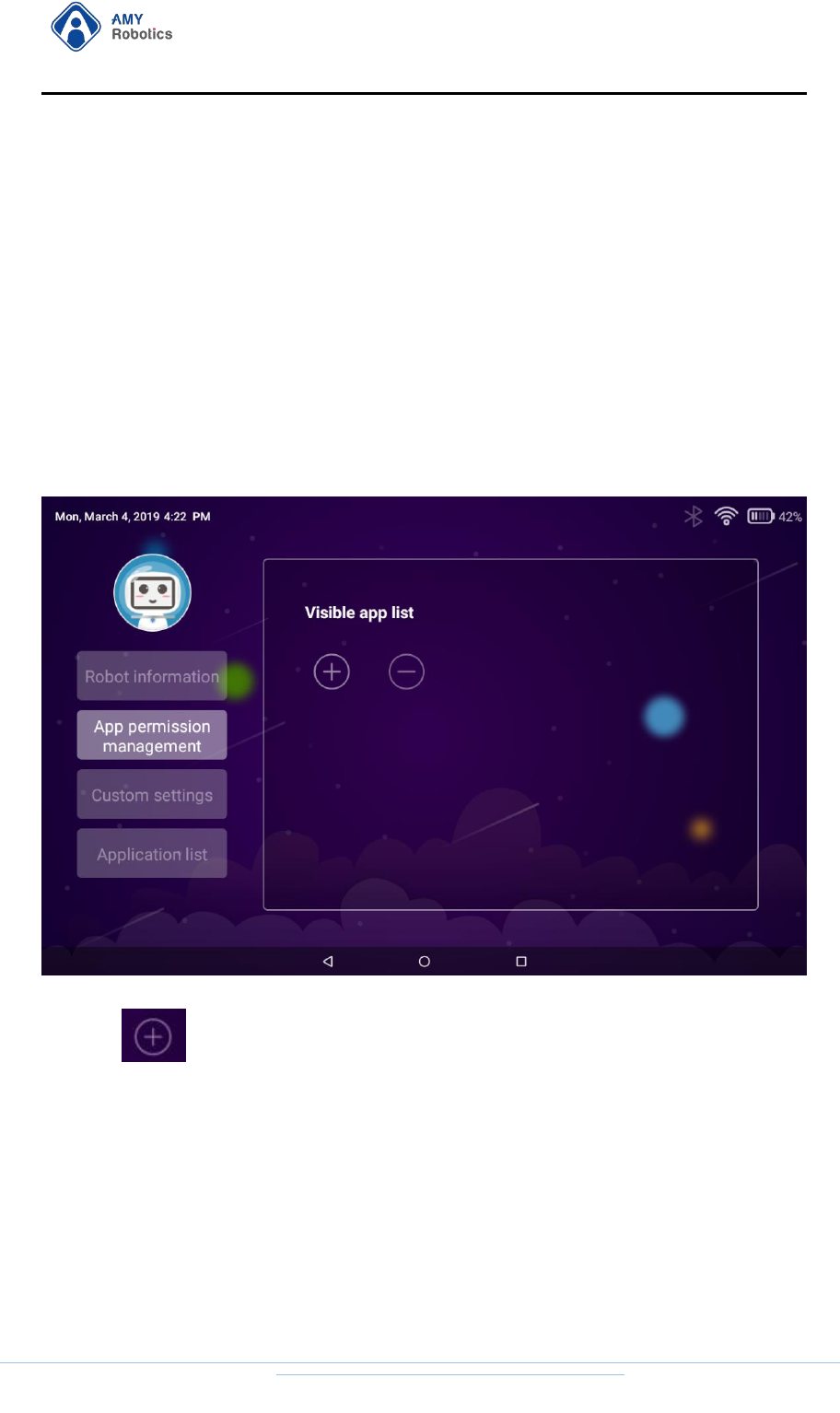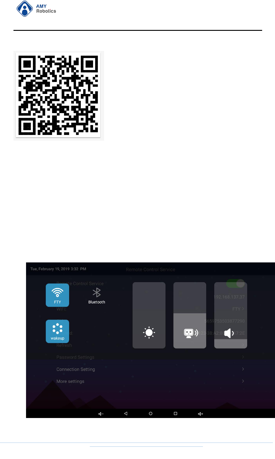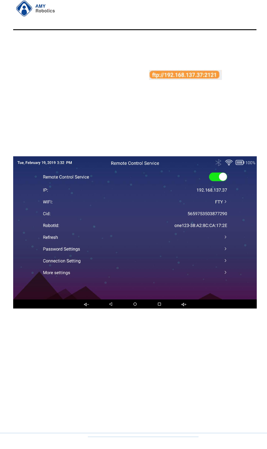 After logging in to the "Remote Control" APP "AMYRobotics" on the mobile phone,