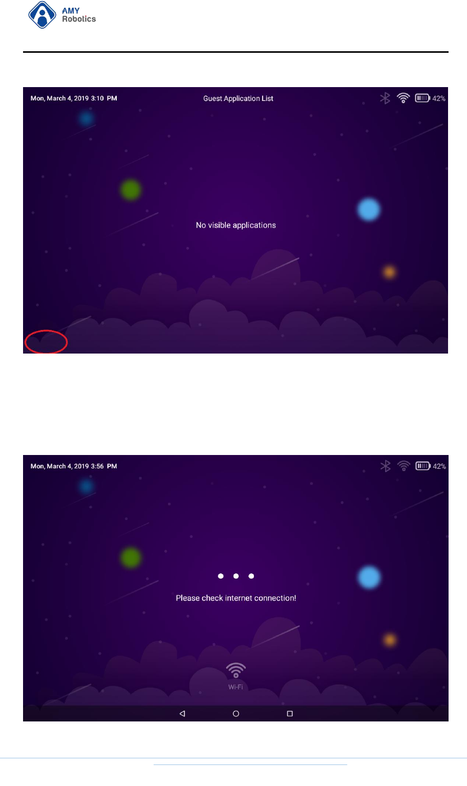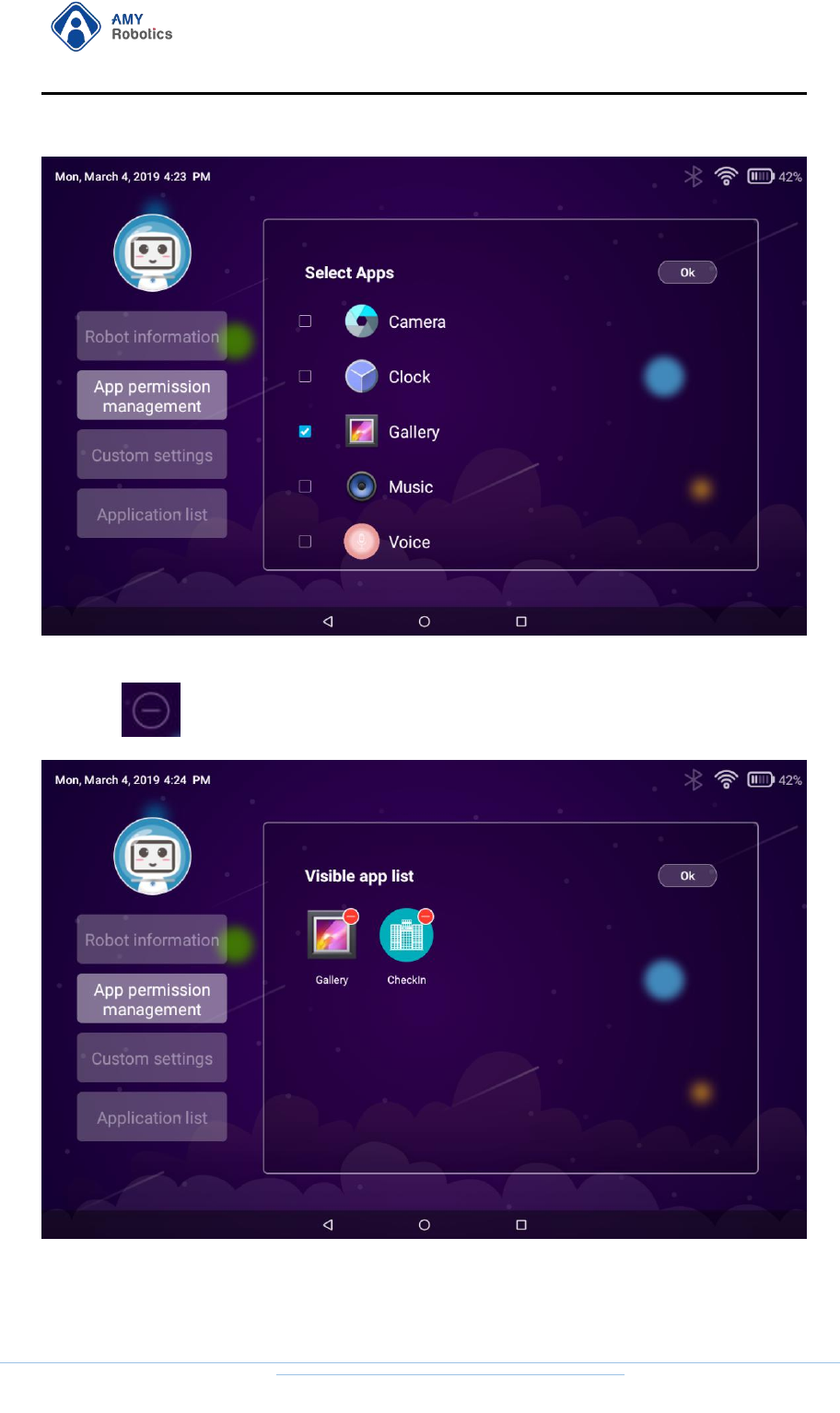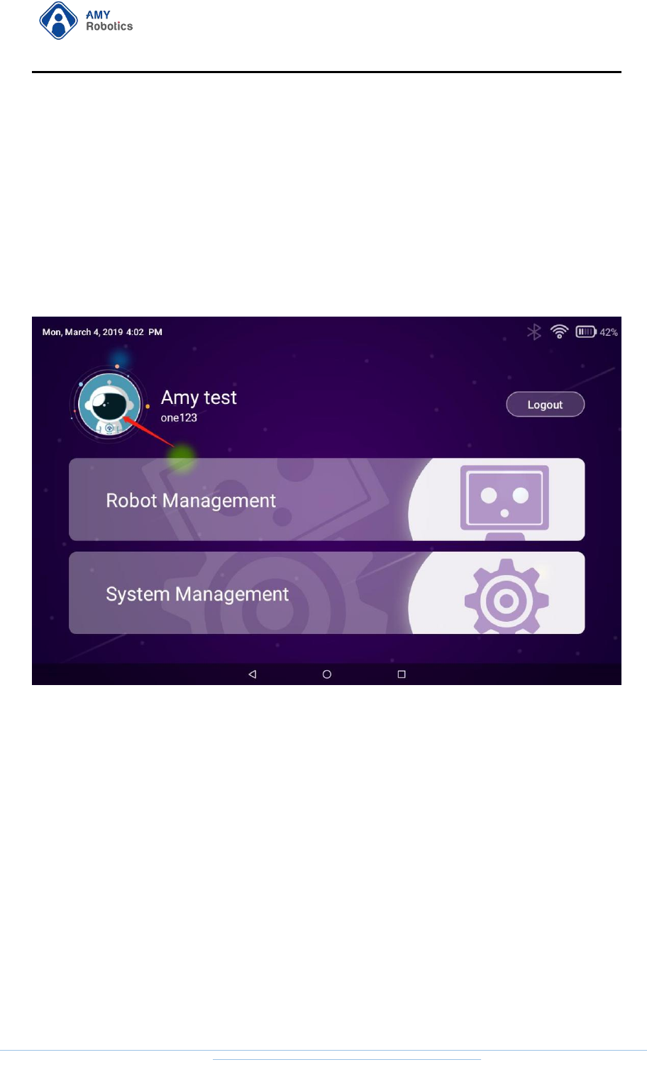 After logging in to the "Remote Control" APP "AMYRobotics" on the mobile phone,