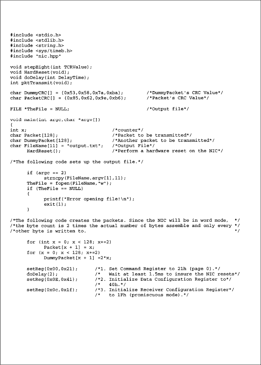 DP8390 NIC Family of Ethernet Controllers, for a description of the PCtoNIC routine used in this program.