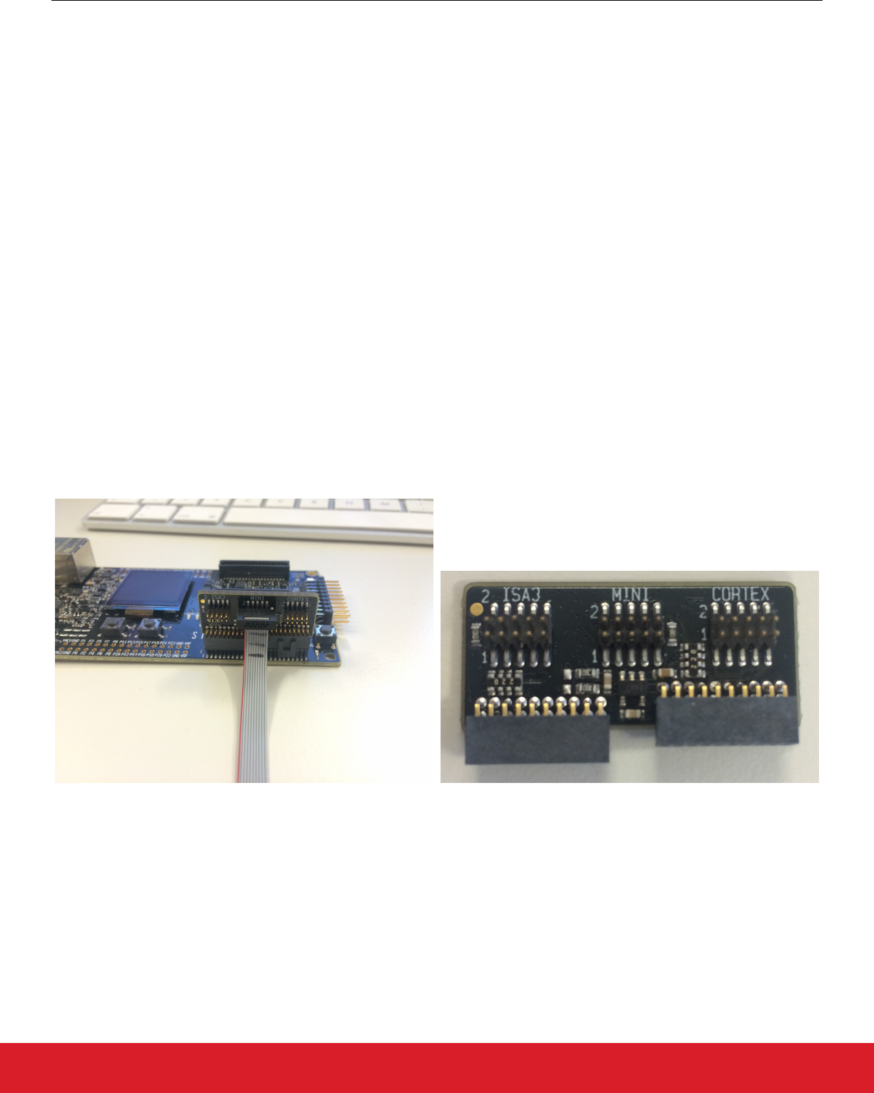 connects to the 20-pin Standard ARM Cortex Debug Connector directly and provides only 6-pins for serial wire debug capabilities only.
