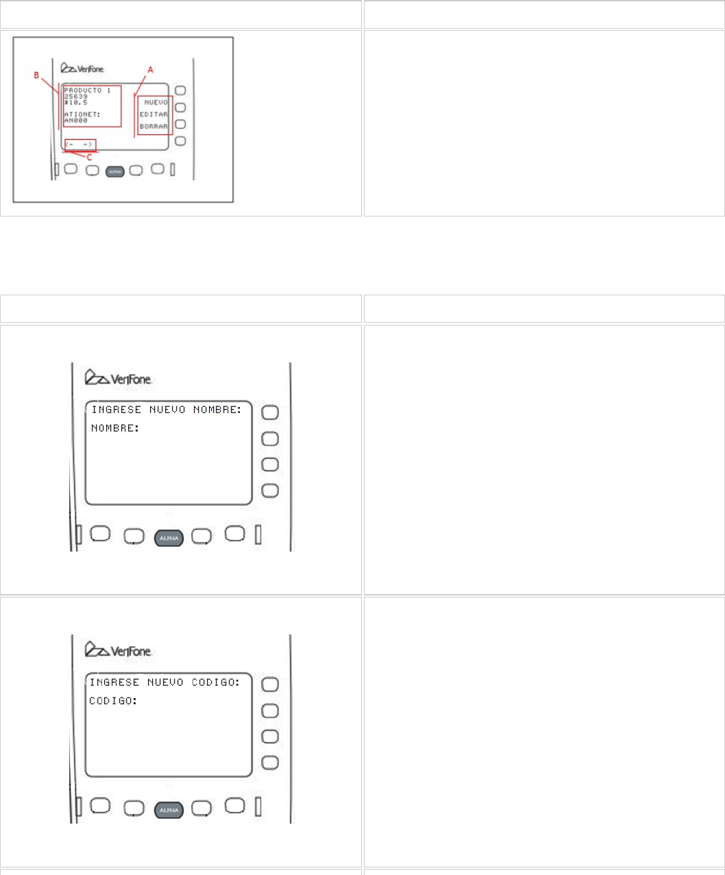Para crear un nuevo producto en el catálogo local presione la tecla lateral de la pantalla correspondiente y sigas las siguientes instrucciones: