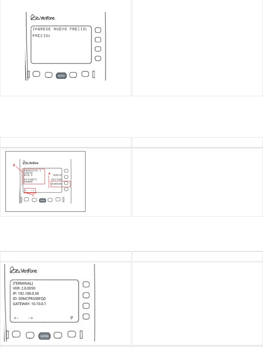 En esta pantalla, se muestra la version de la terminal, la IP de la