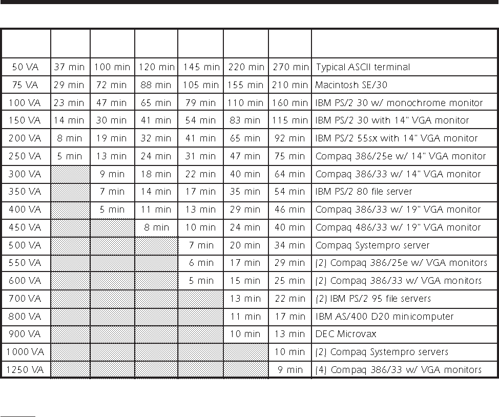 A chart in section 9.0 shows how much time your equipment can remain