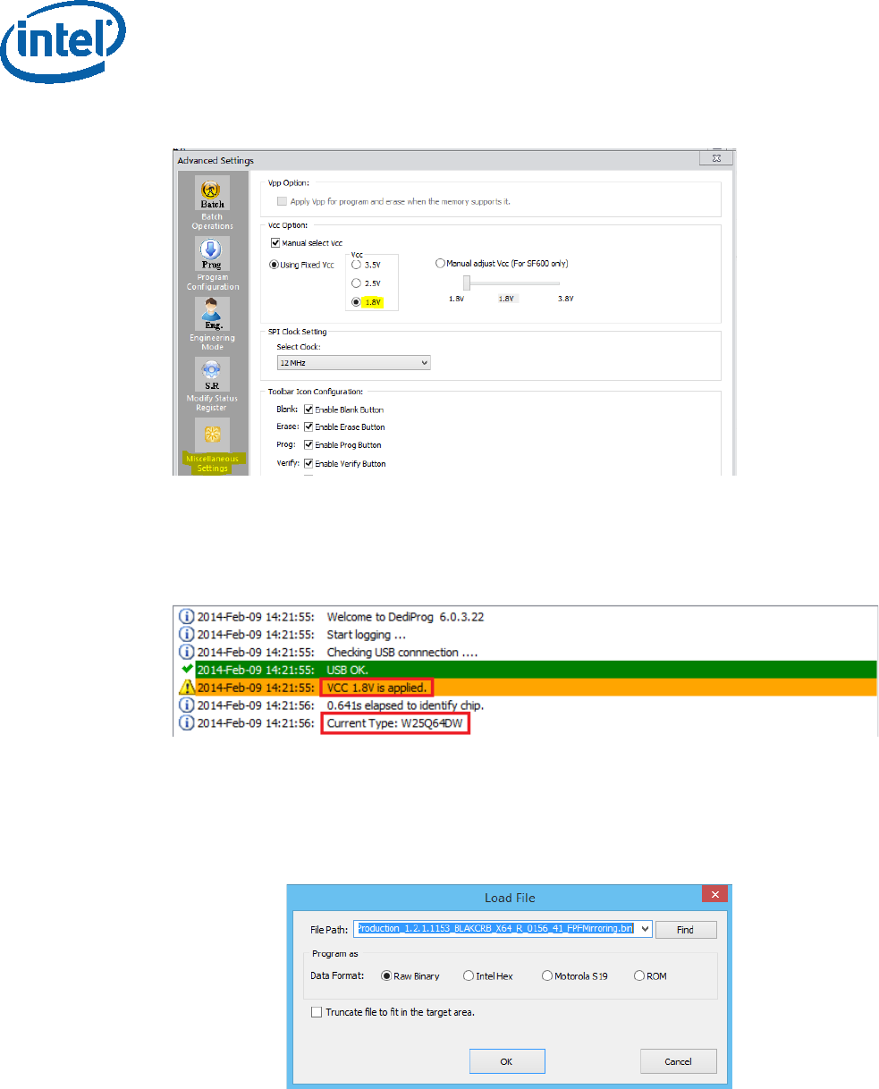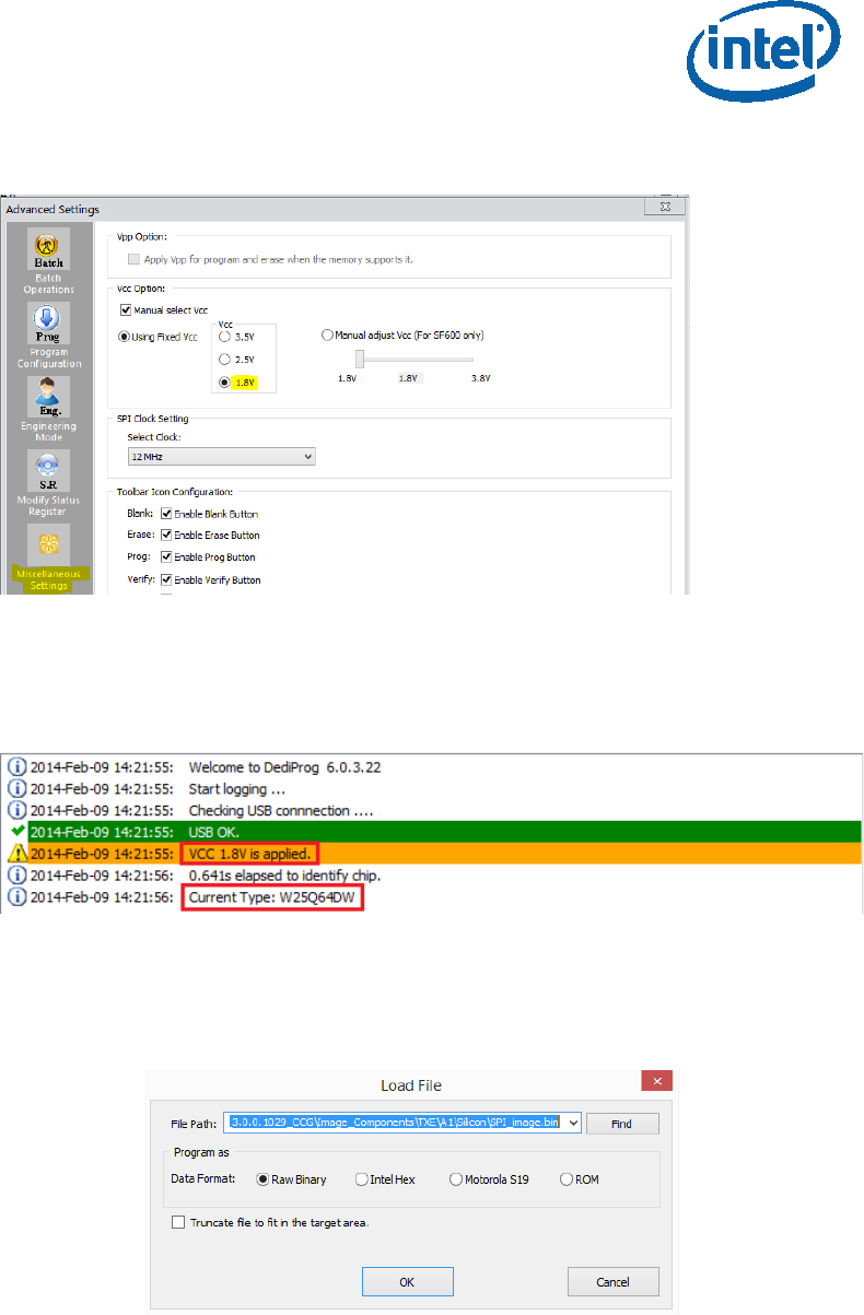 • Click: Config Miscellaneous Settings, under “Vcc Option” configure Vcc voltage