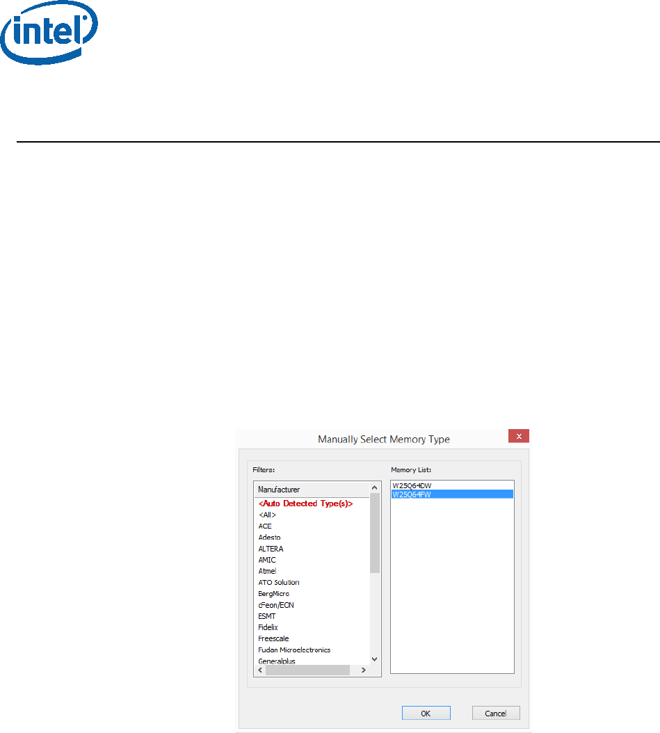 • In the “Manually Select Memory Type” window, select the SPI flash and click OK