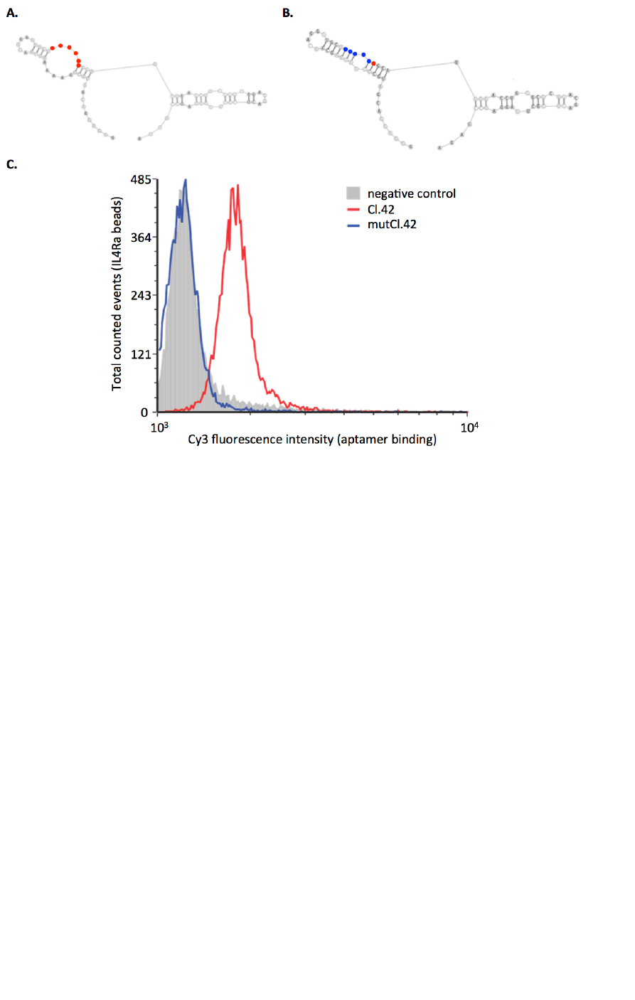 Cl.42, mutCl.42, or RNA aptamer library composed of random aptamers, were Cy3 labeled with the Cy3 dye