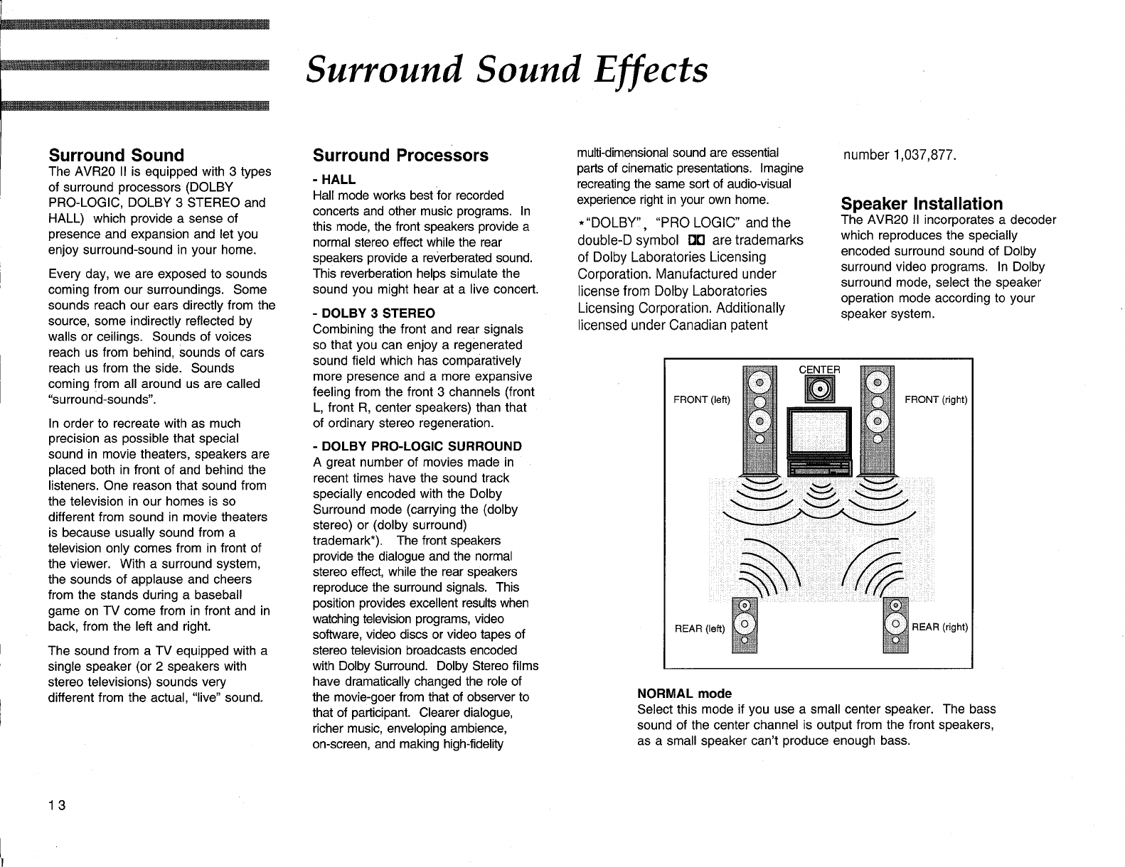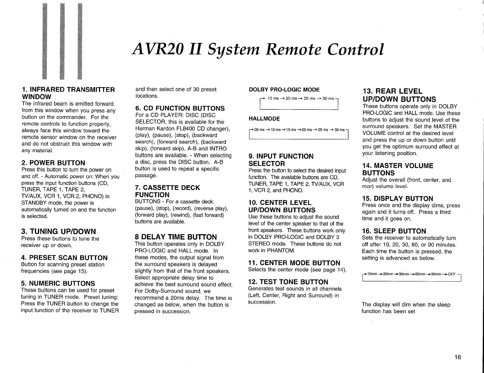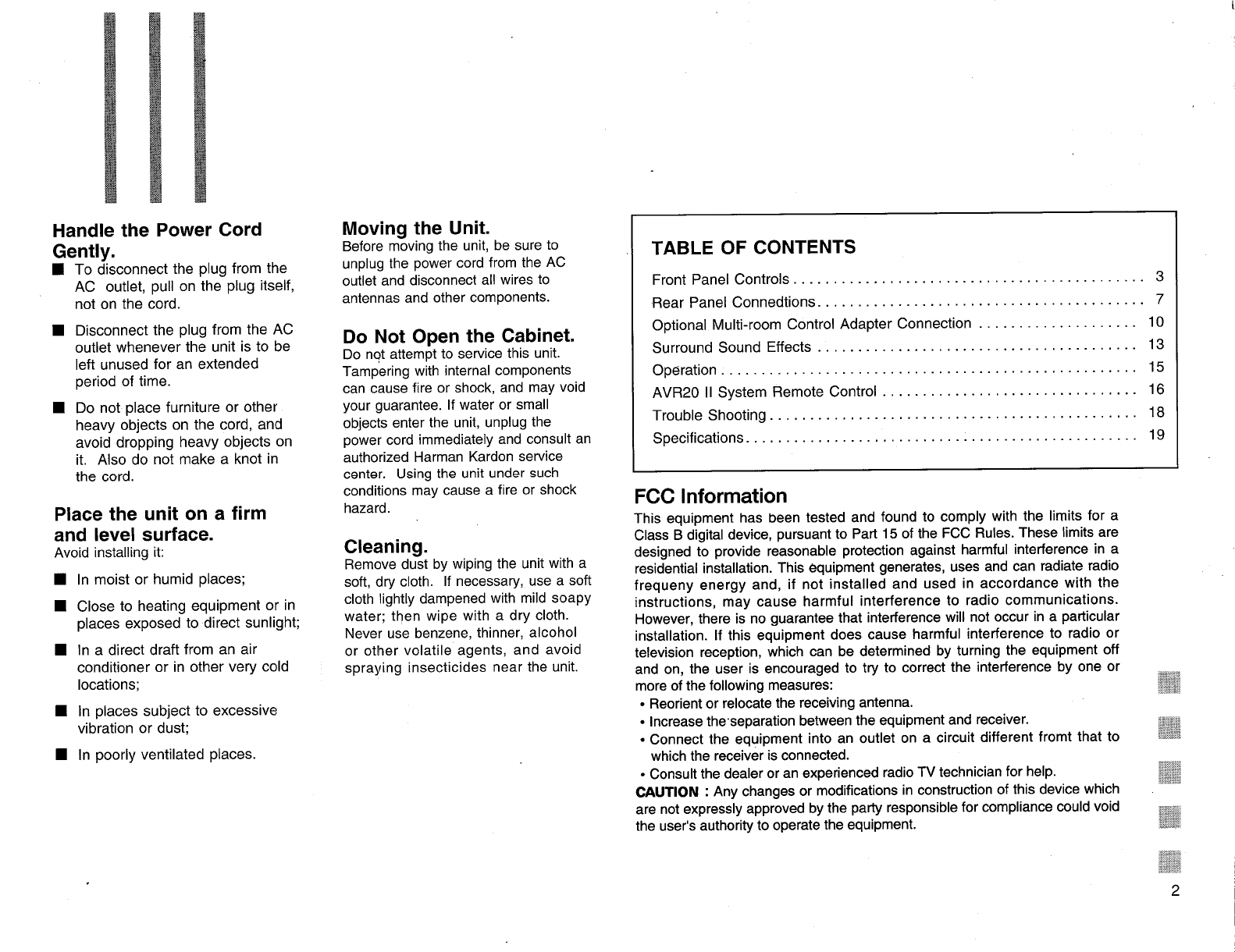Harman Kardon AVR 20 MKII Receiver Owner’s Manual AVR20II Om