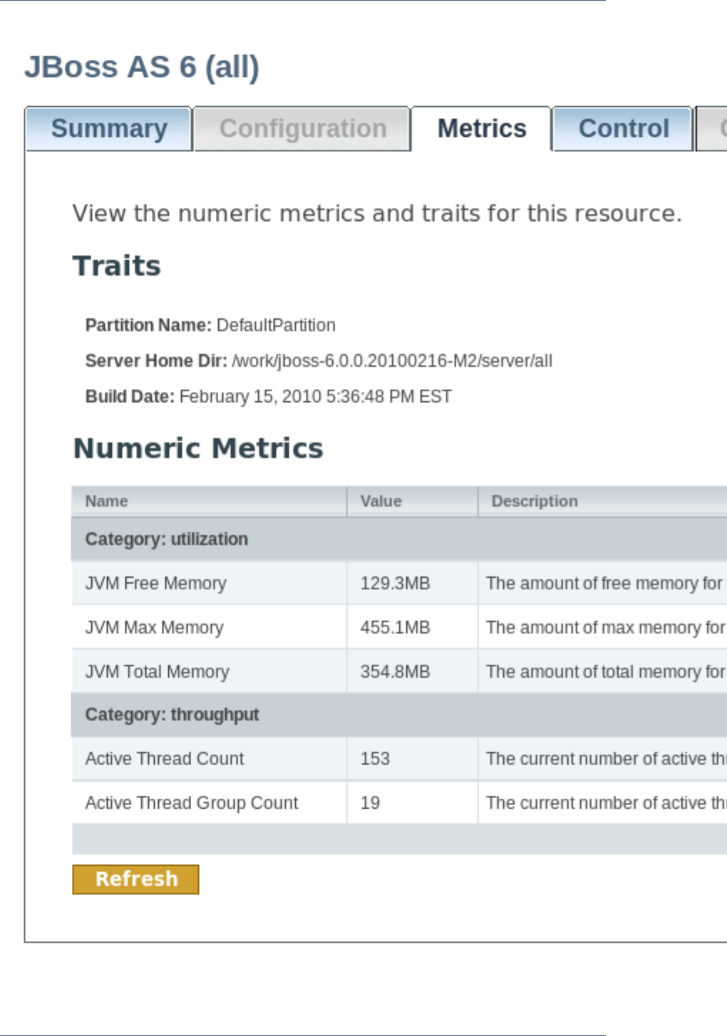 Summary tab. However some resources such as the JBoss Application Server instance itself, also