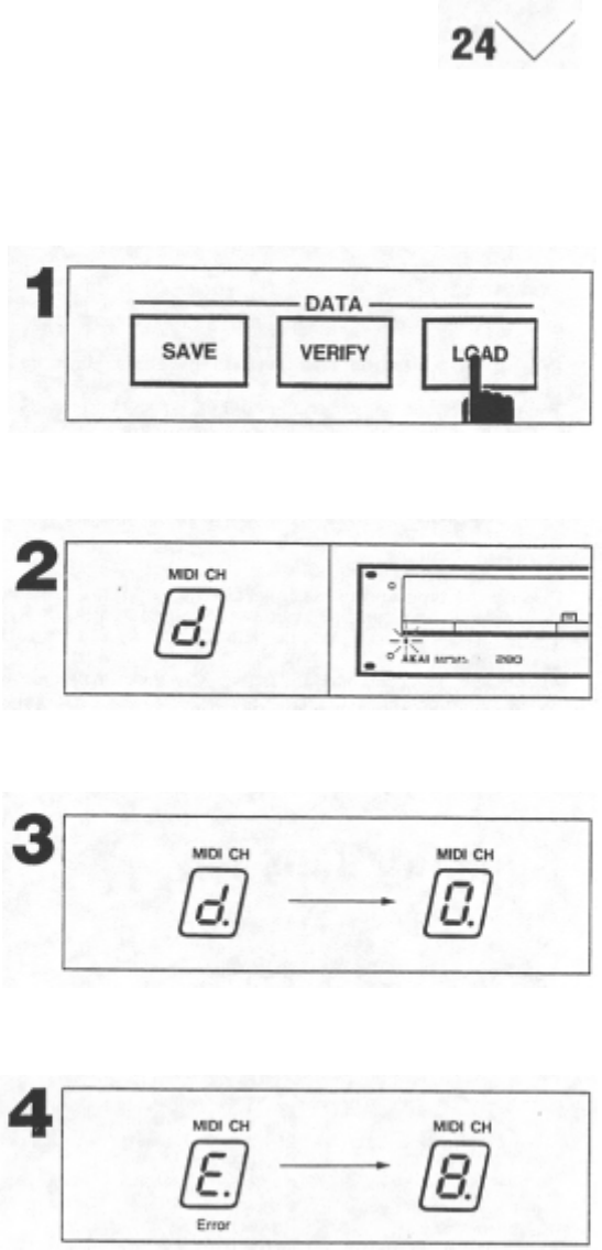 4. If the MIDI CH display will indicate the letter E and blink for