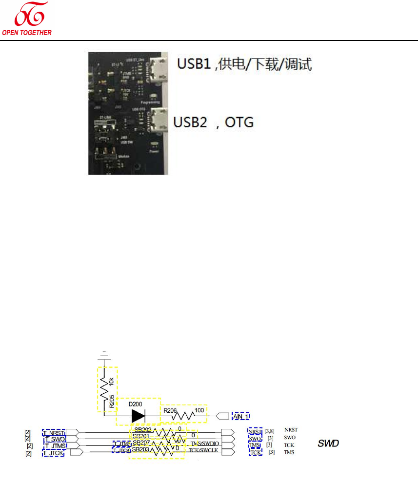 4. 开发板端已经预留 3V3/3V 电源接口的跳线帽,控制电源断开和连通