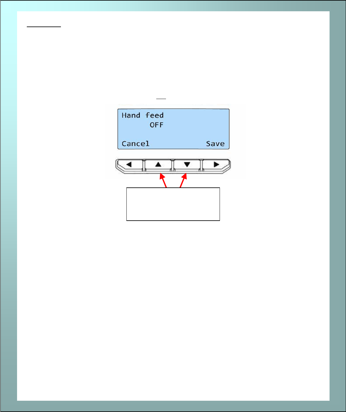Hand feed ..................................................................................................................................- 16 -