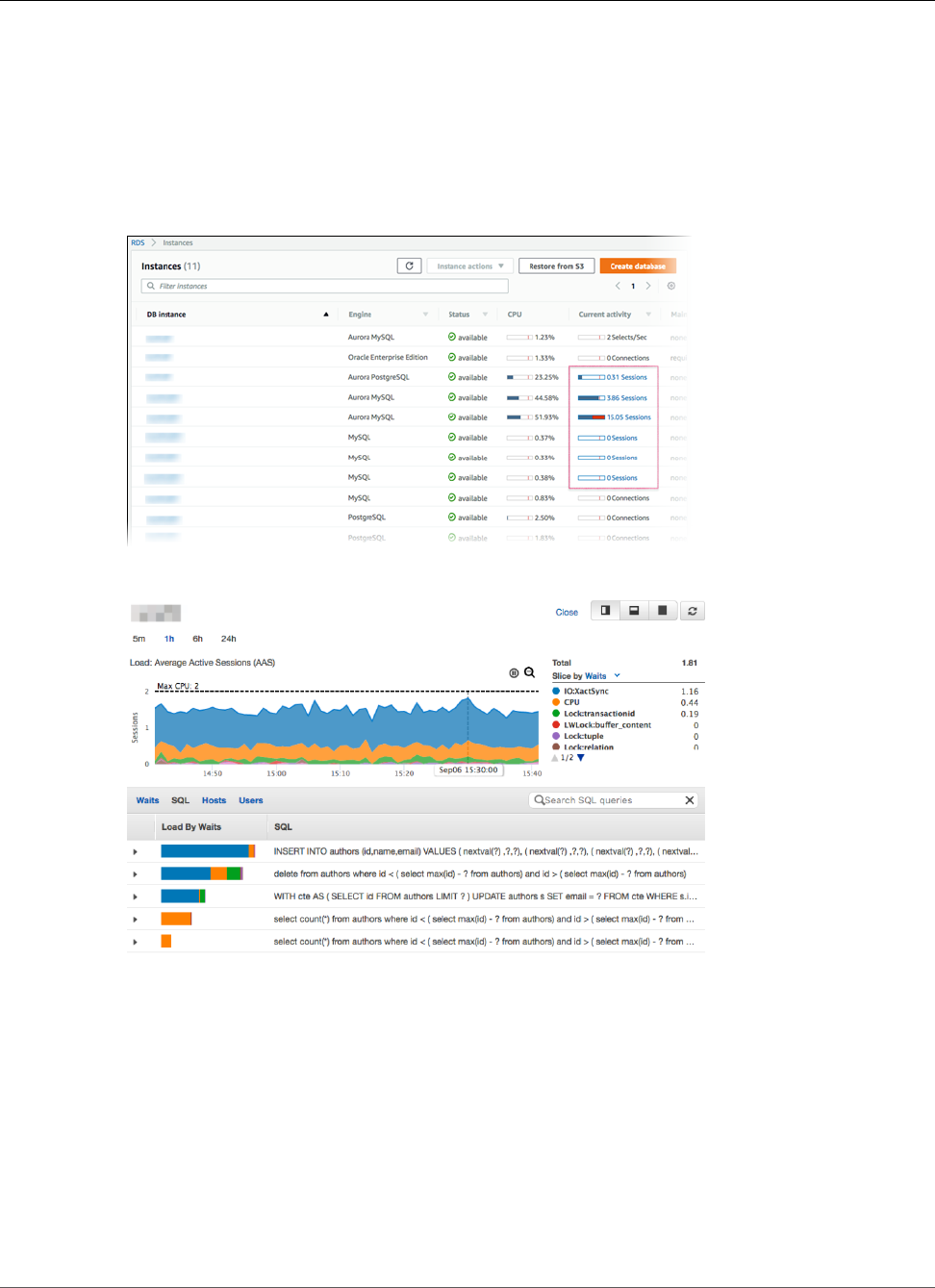 - Using Amazon RDS Performance Insights