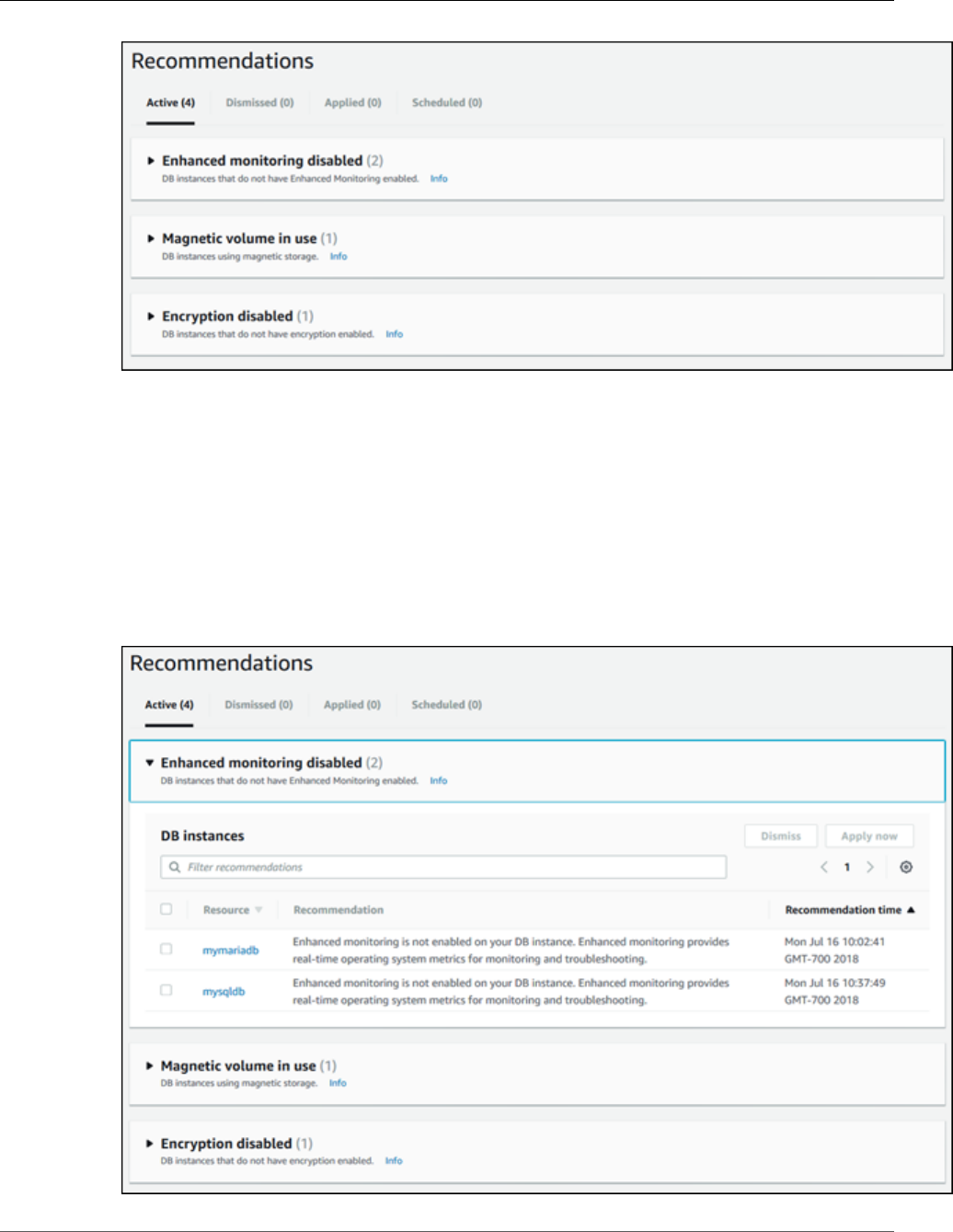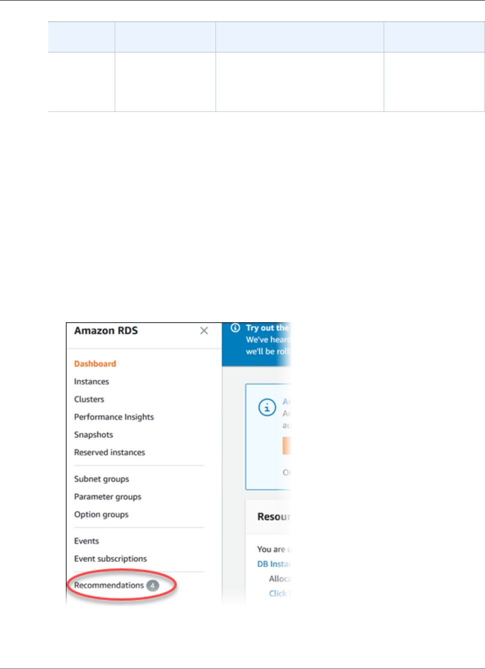 - Using Amazon RDS Recommendations