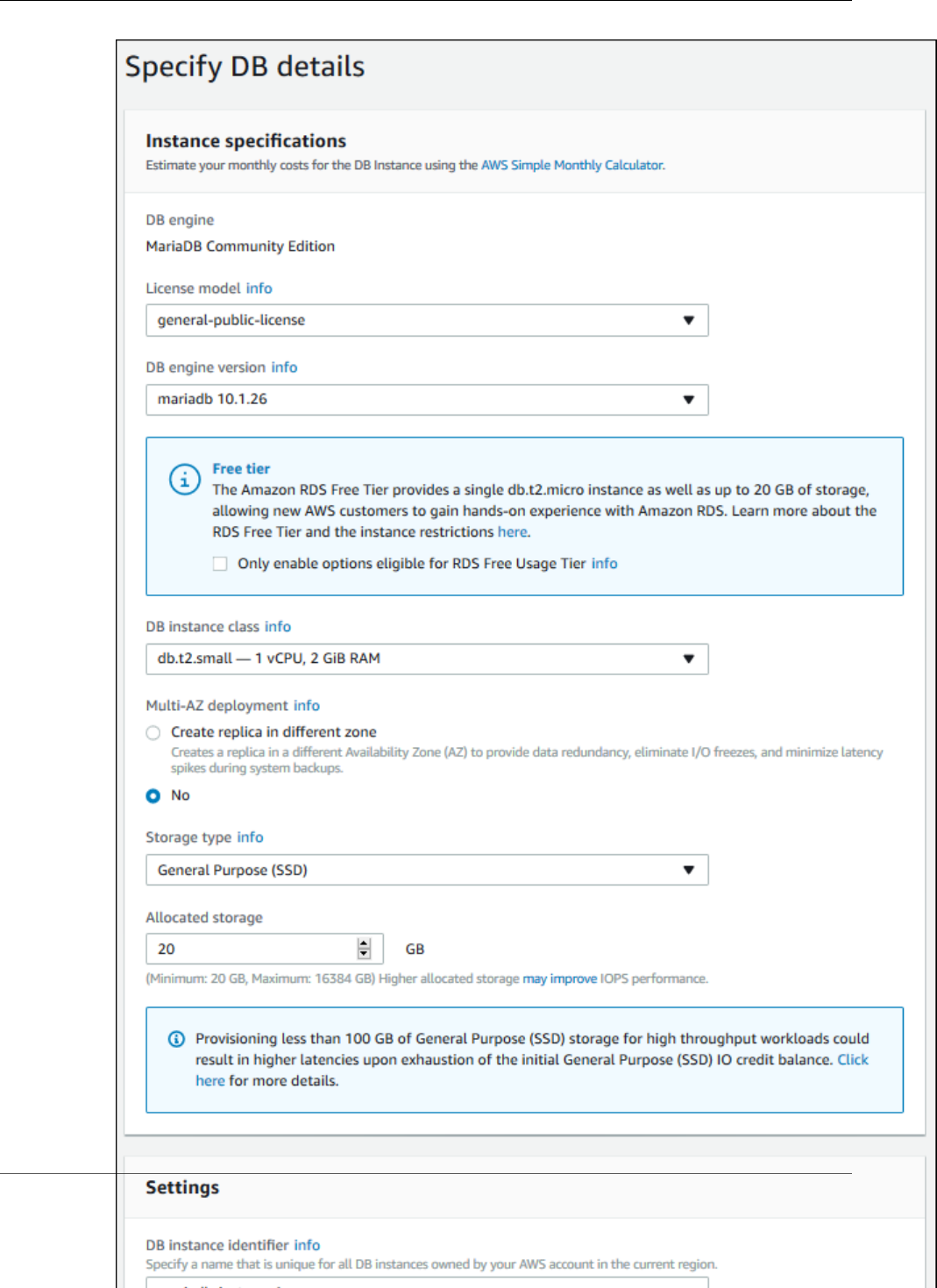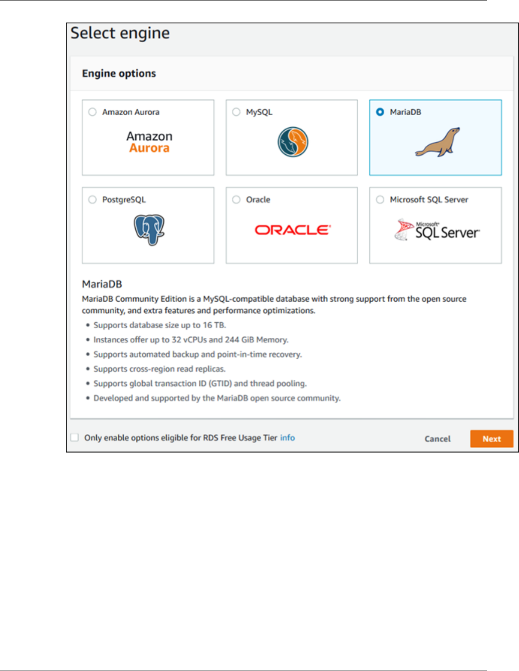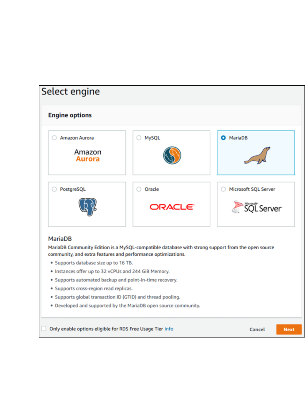 - Creating a MariaDB DB Instance and Connecting to a Database on a MariaDB DB Instance