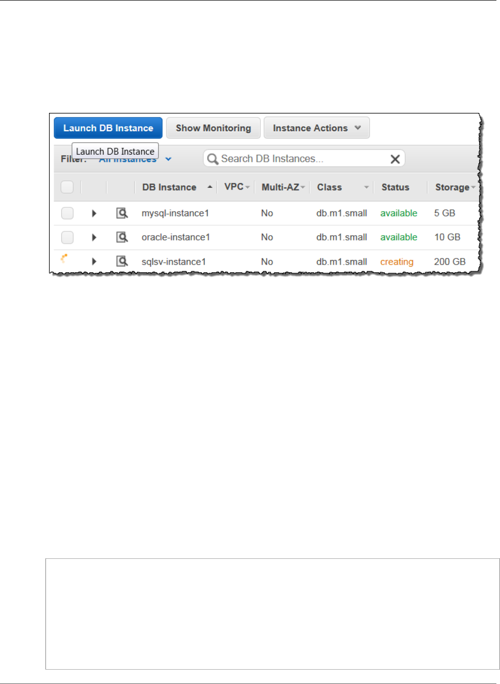 - Creating an Amazon RDS DB Instance