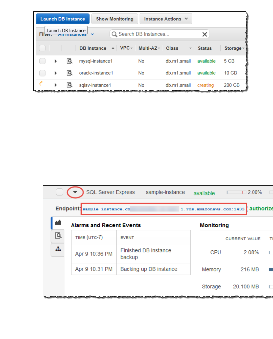 - Creating a Microsoft SQL Server DB Instance and Connecting to a DB Instance