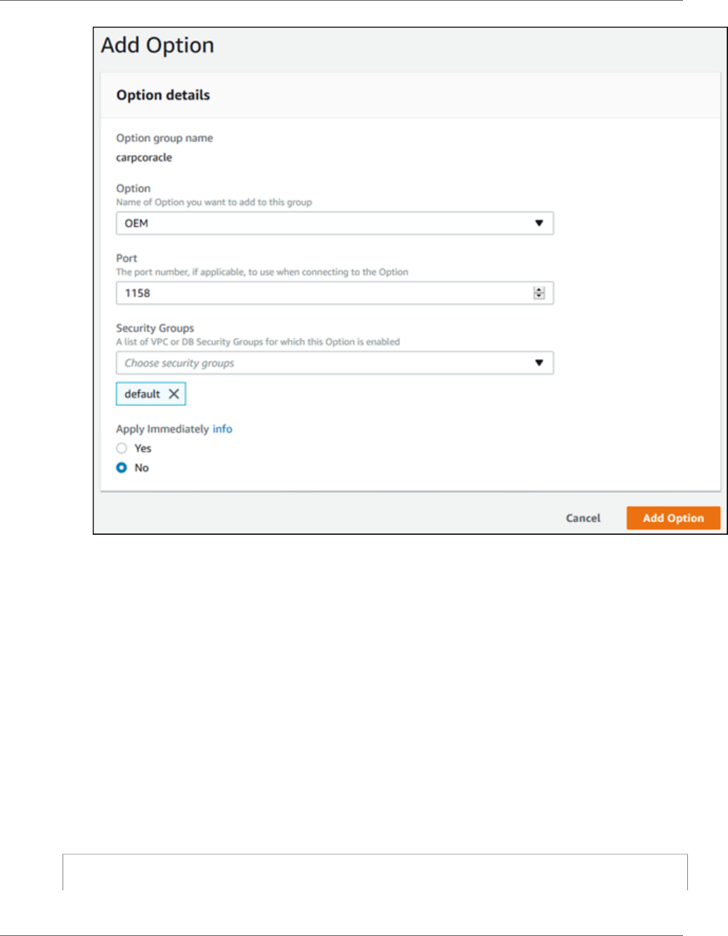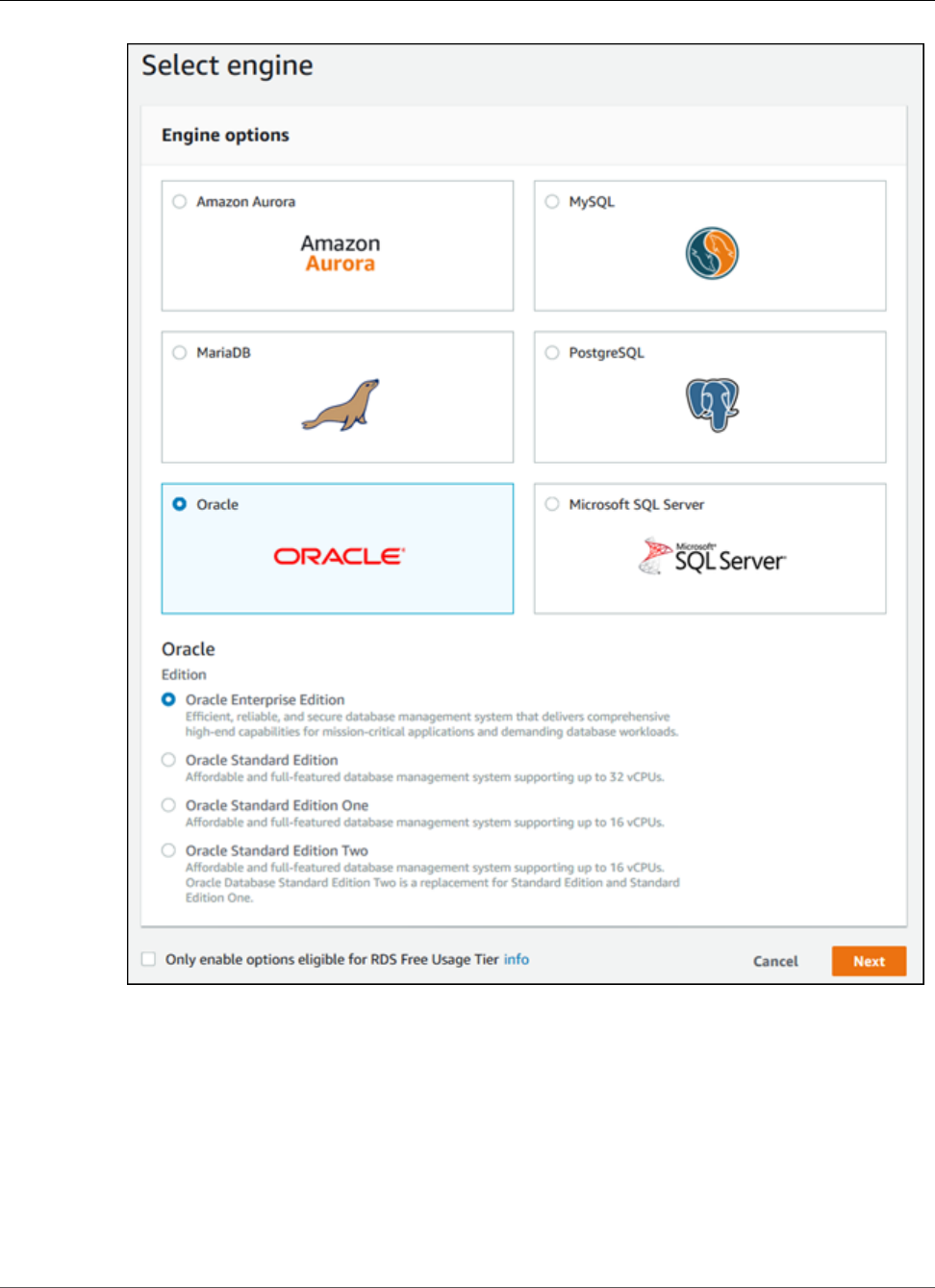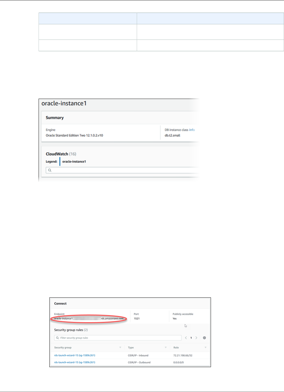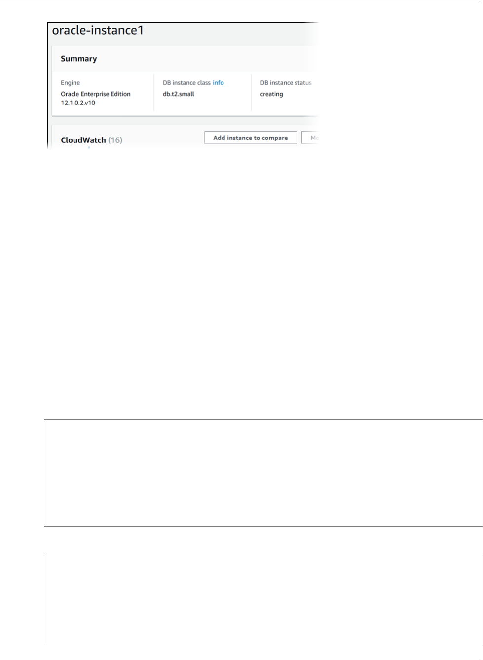 - Creating an Oracle DB Instance and Connecting to a Database on an Oracle DB Instance