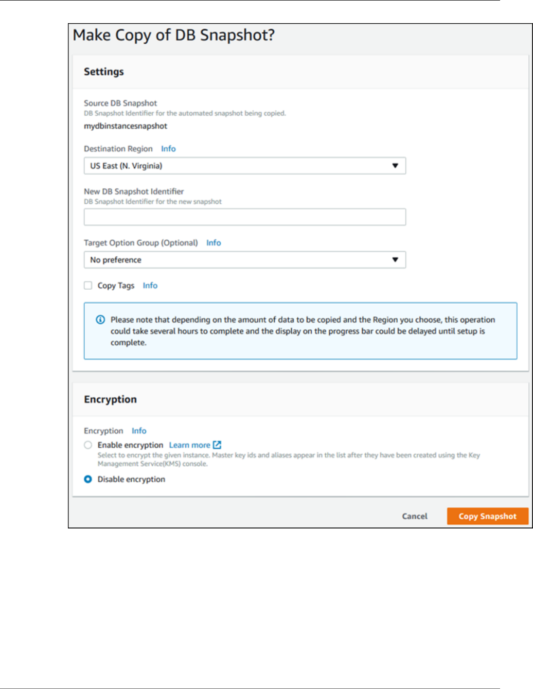 Updated to support cross region DB snapshot copies; new
