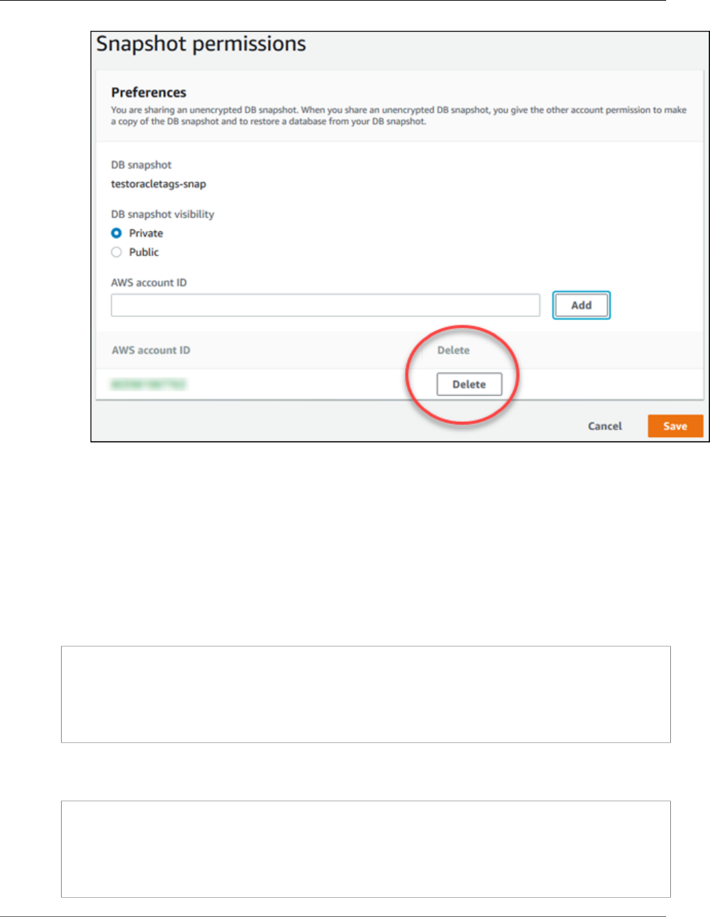 - Sharing a DB Snapshot