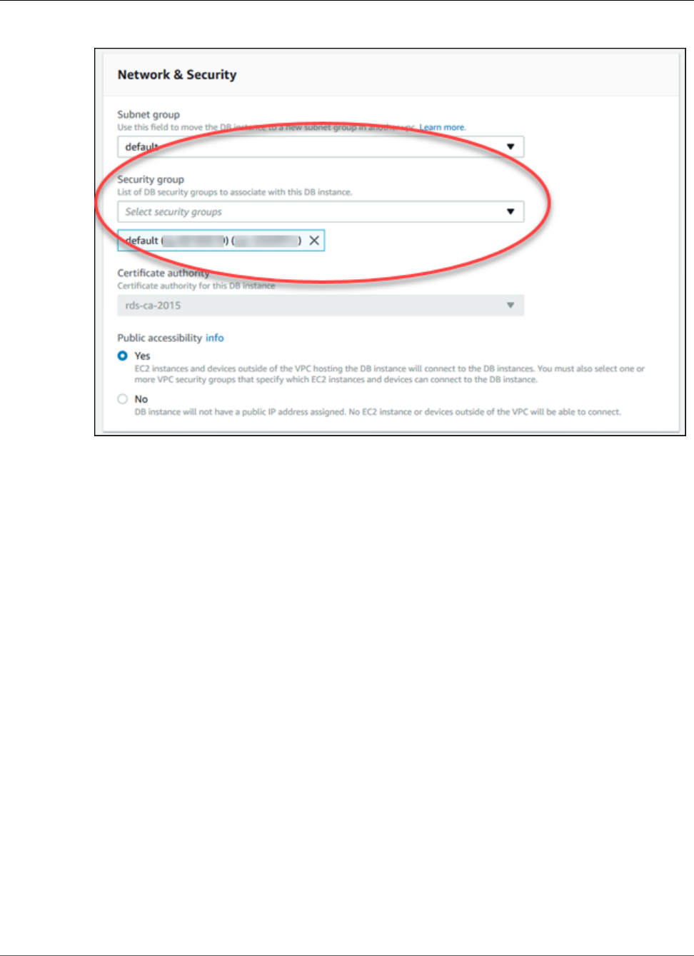 VPC security group.