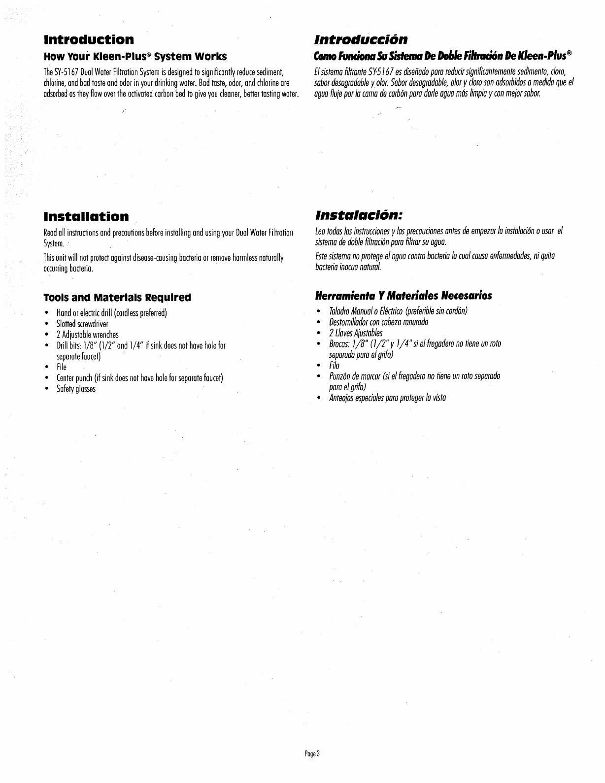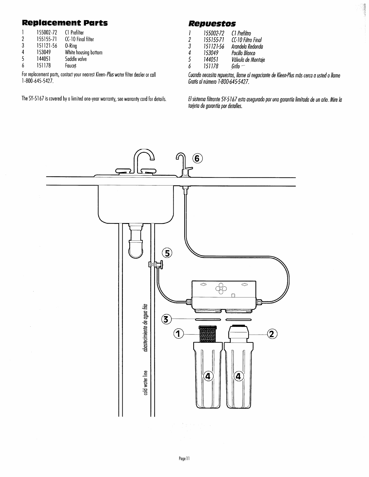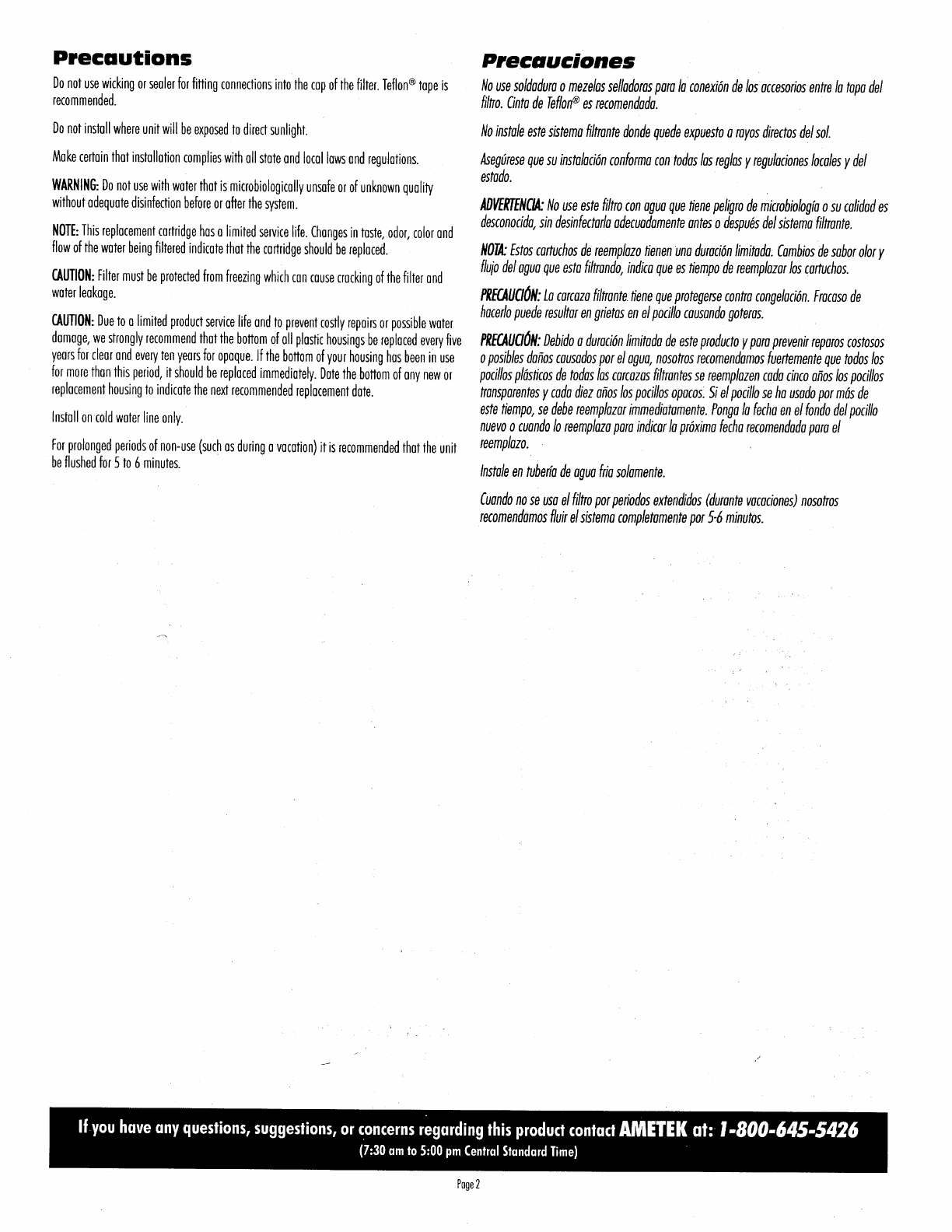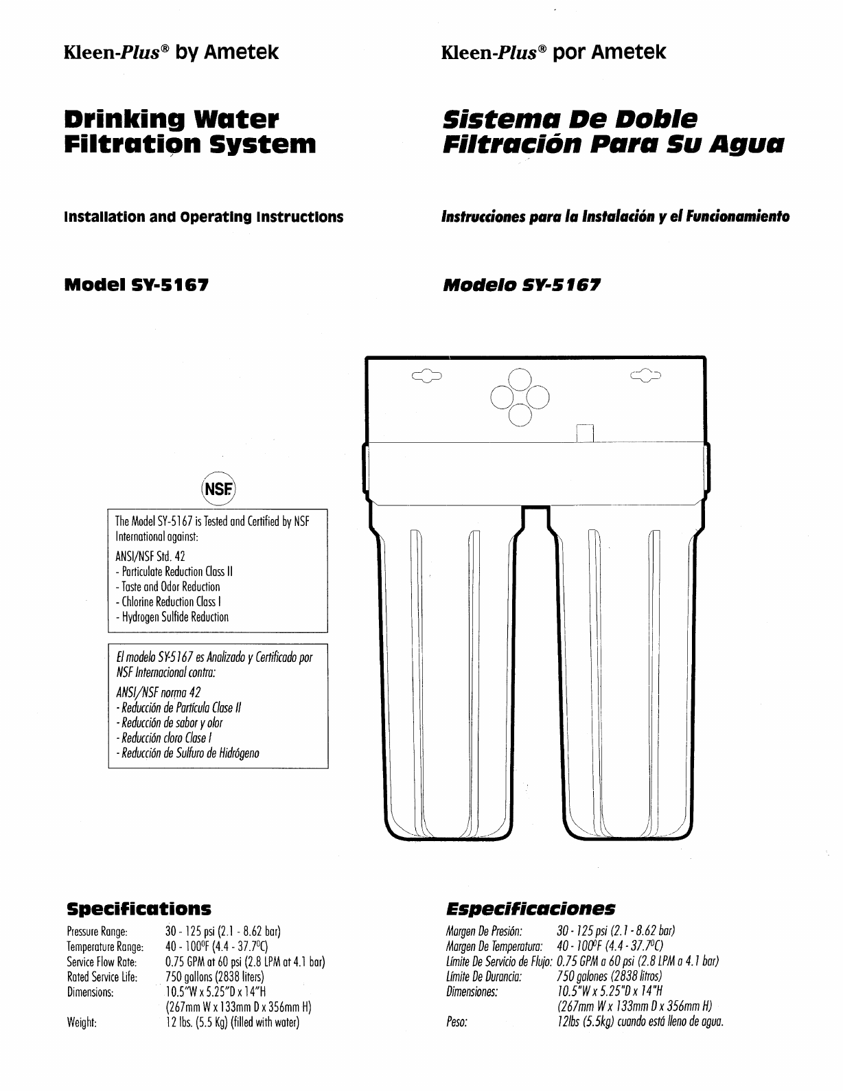 User Manual: Ametek Kleen-Plus SY-5167 water filter Installation & Operating Instructions manual