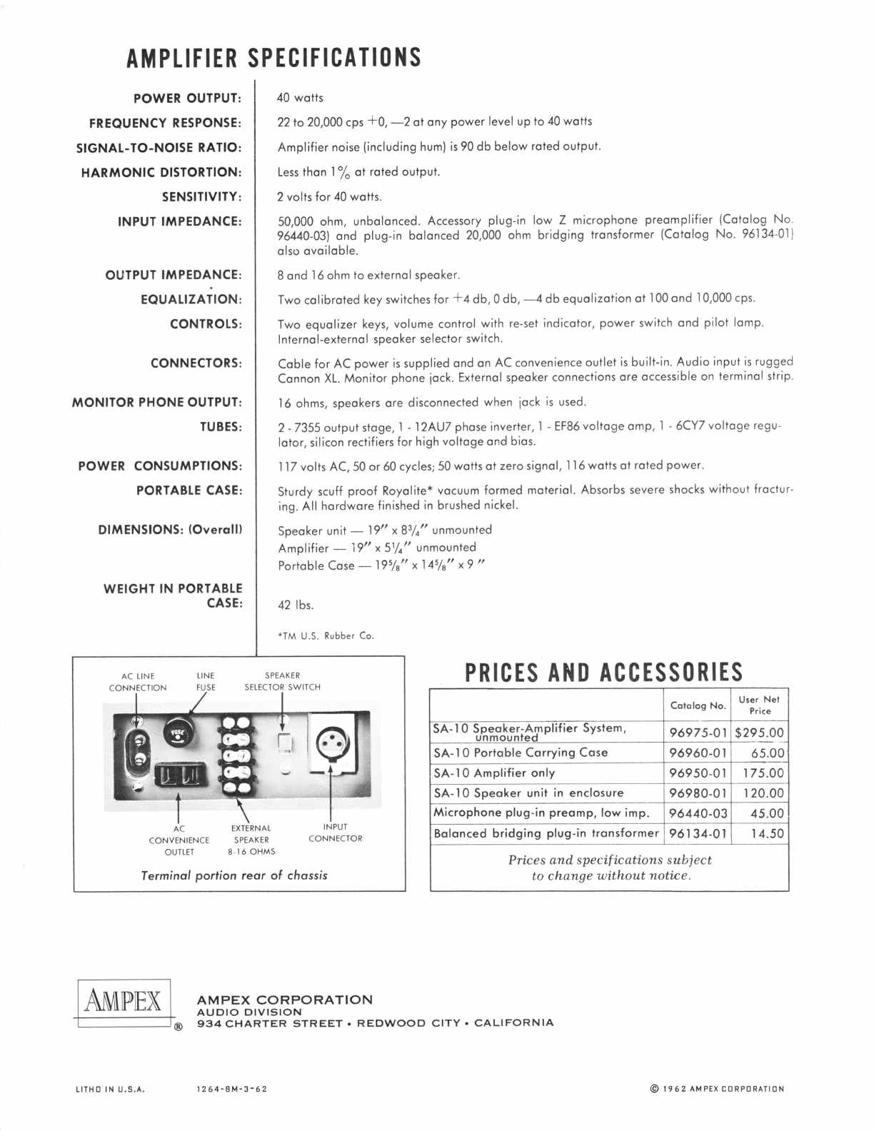 Ampex SA 10 Brochure 1962
