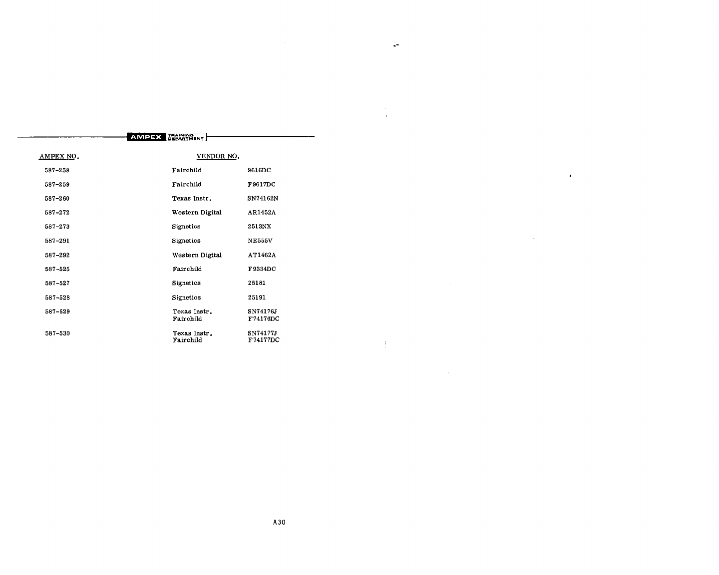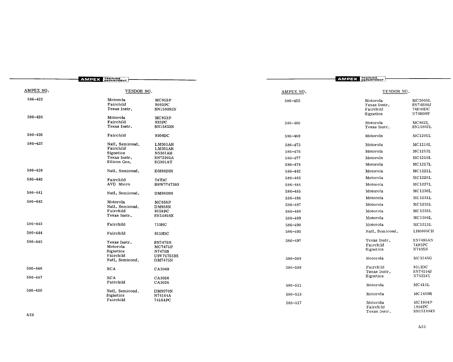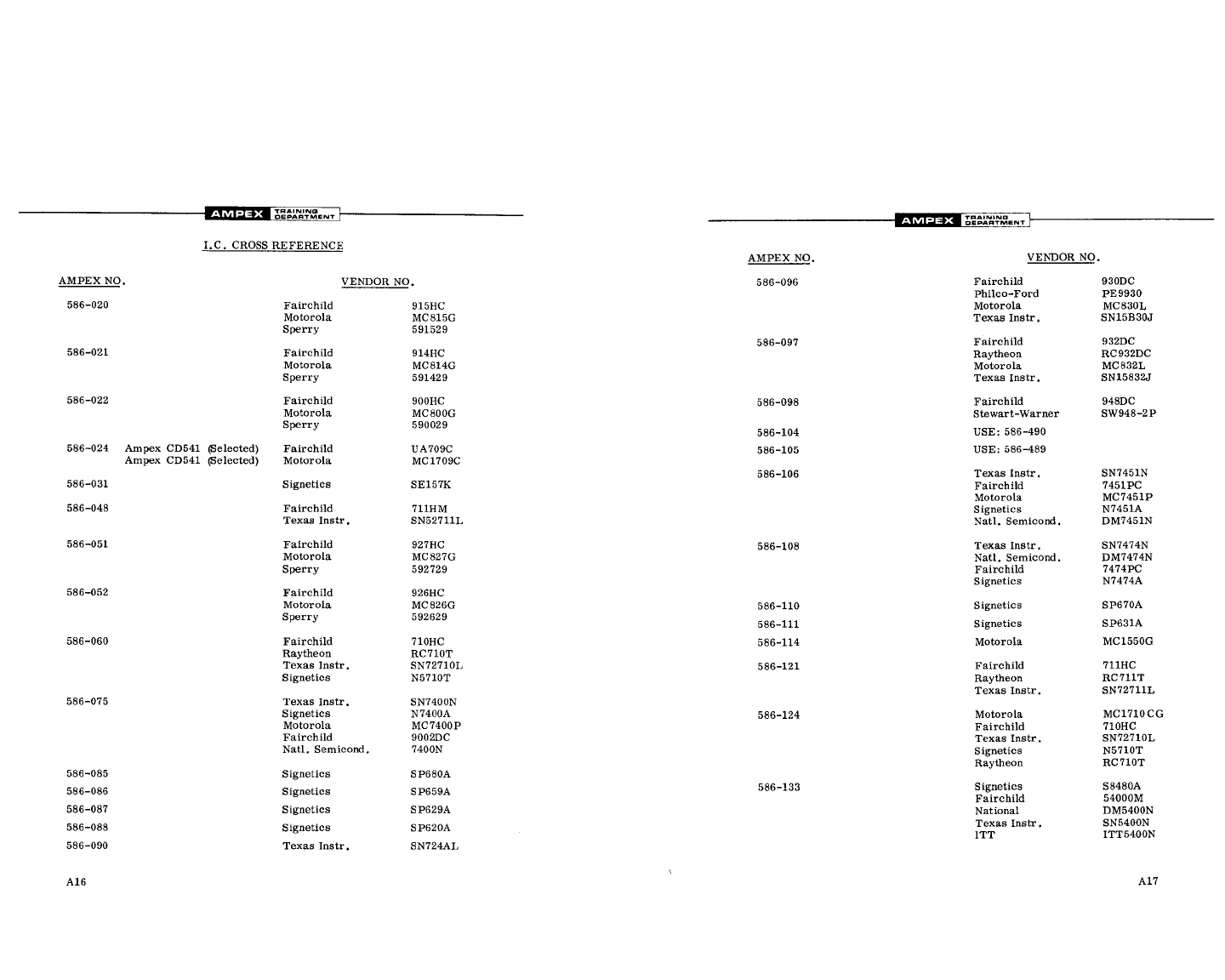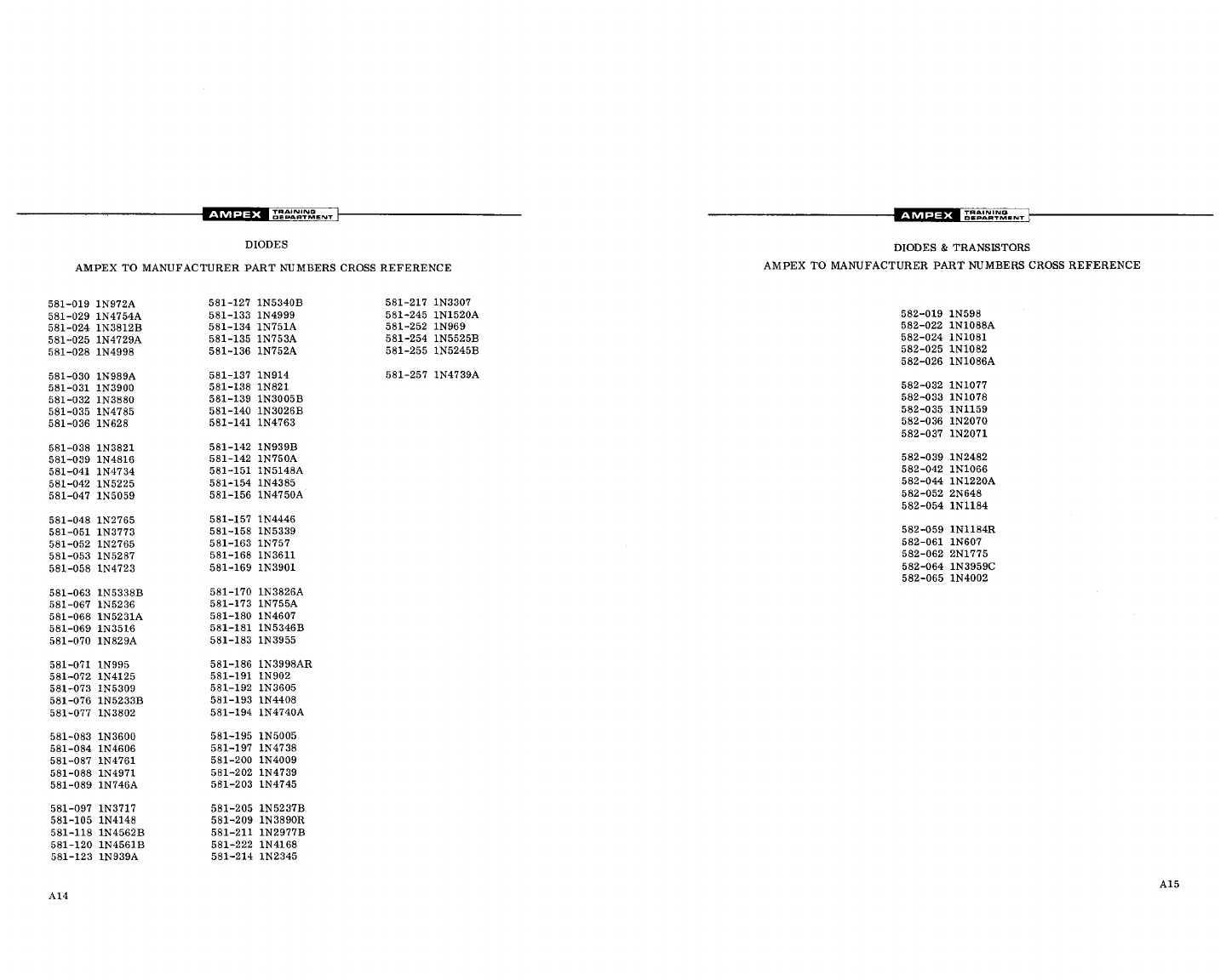AMPEX TO MANUFACTURER PART NUMBERS CROSS REFERENC