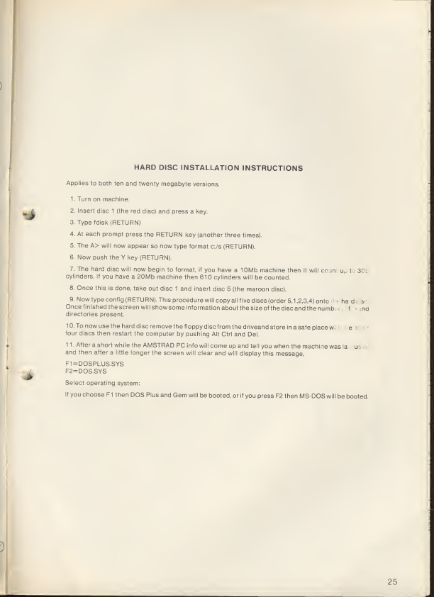 HARD DISC VERSIONS ARE SUPPLIED WITH AN EXTRA
