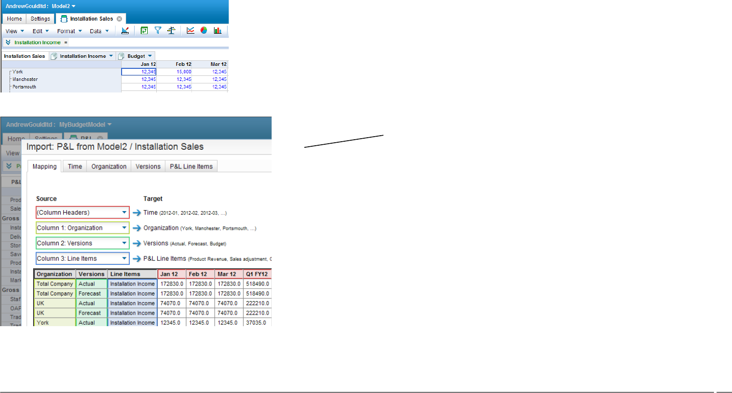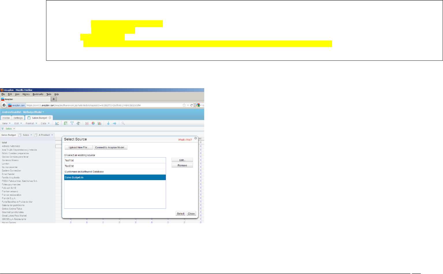 4. Having loaded the Excel sheet into Anaplan, it can now be used as the source for an import into a list or a module. Open the target module, choose Data>Import