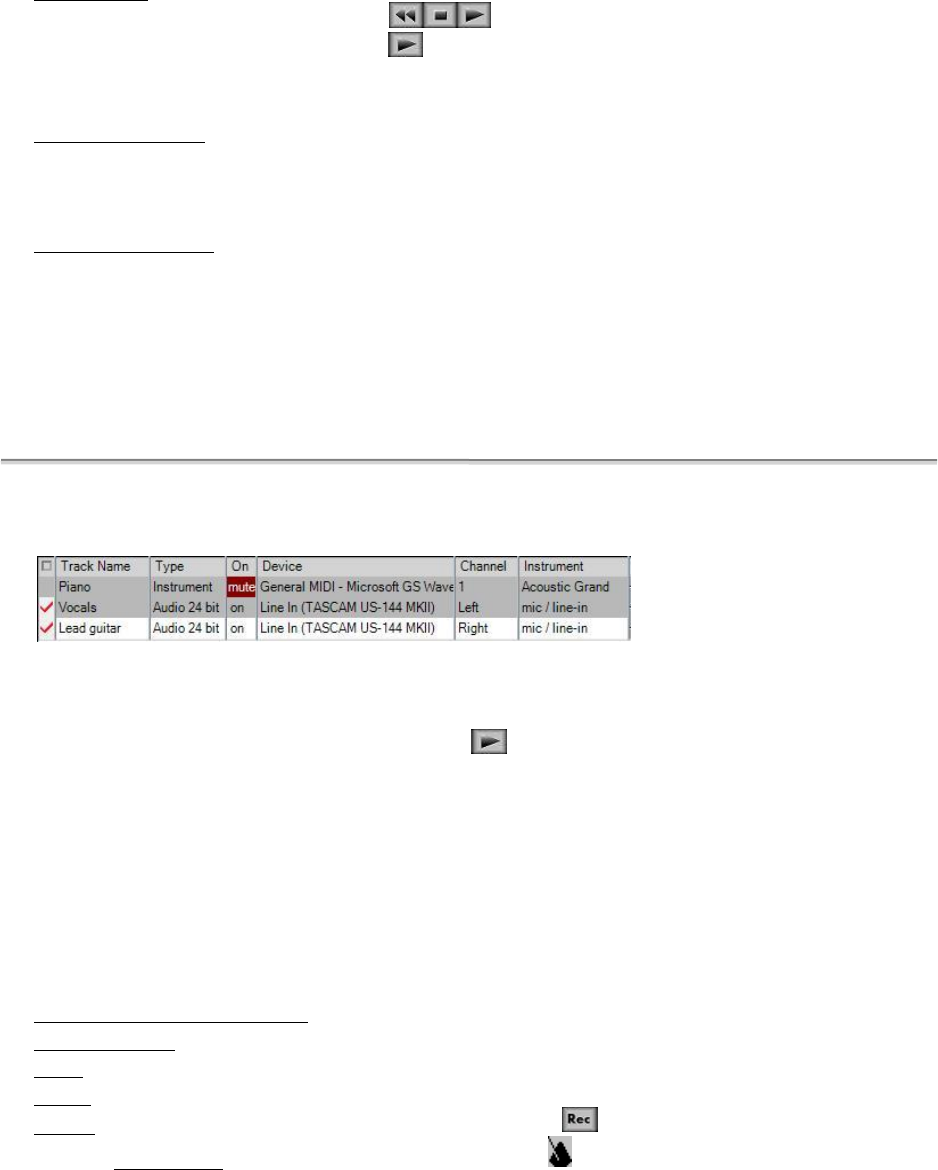 To temporarily silence a single track during playback, click the Track's On column with the left mouse