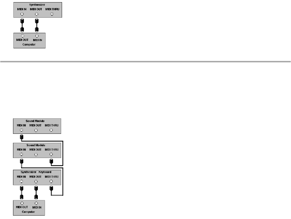 synthesizer in this mode, and connect your MIDI equipment as shown in the diagram below: