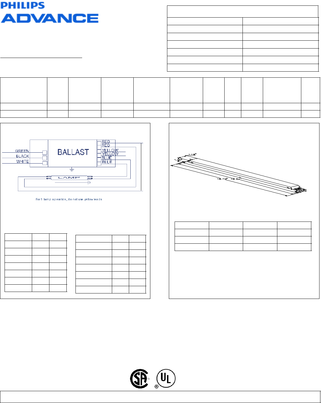 TYPE MANUF. CATALOG # LAMP(S) BALLAST INPUT
