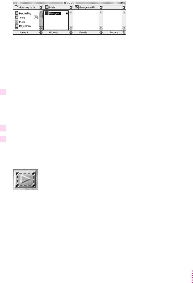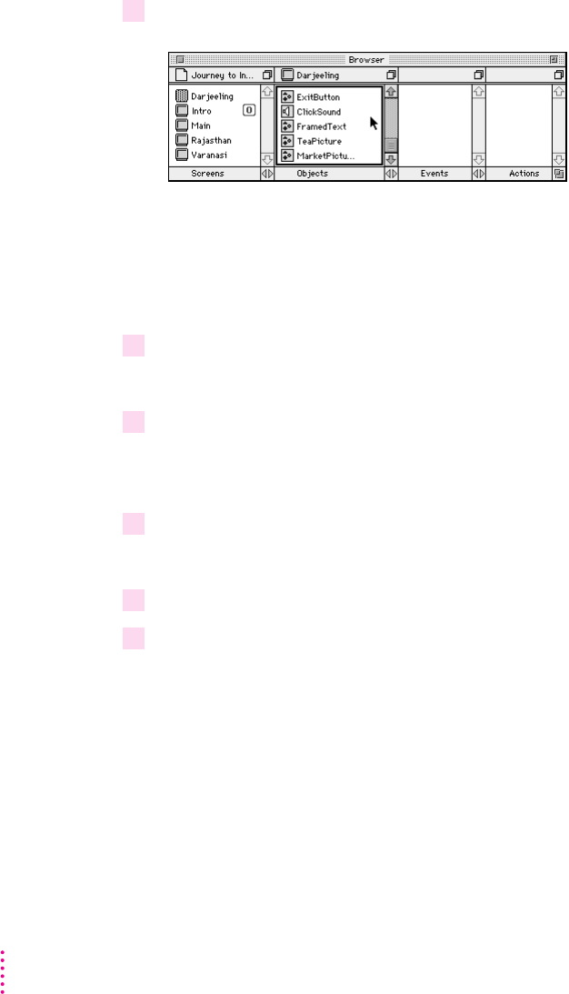 3 Drag the selected objects to Darjeeling in the Screens pane of the Browser miniwindow.