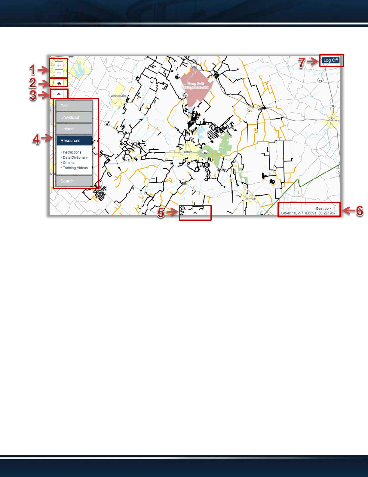 6. Map Information. This text displays the name of the organization you logged in