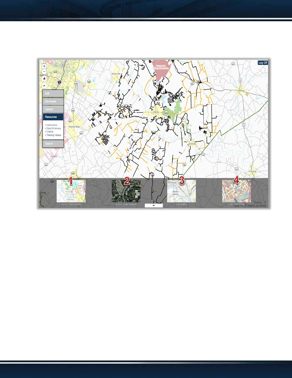 1. TxDOT Planning Map. The default basemap, this is the standard basemap for