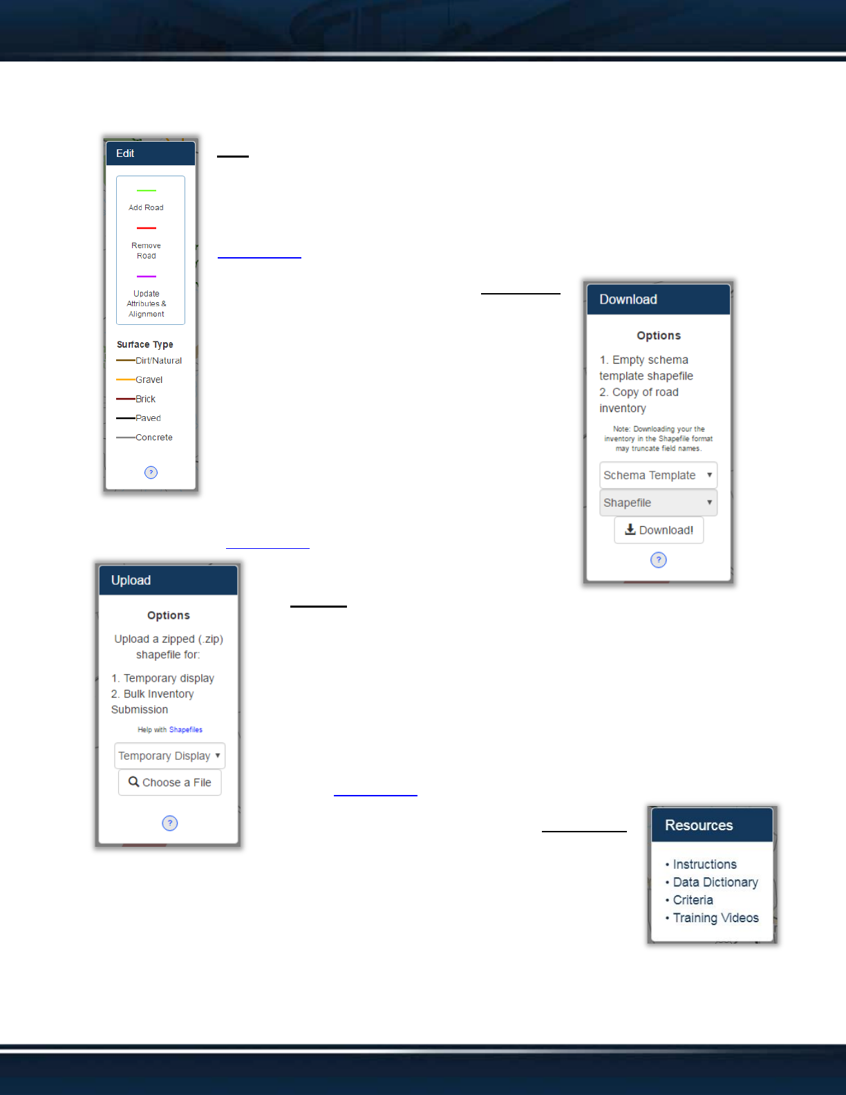 the user to interact with the GIS inventory such as downloading a copy, uploading bulk
