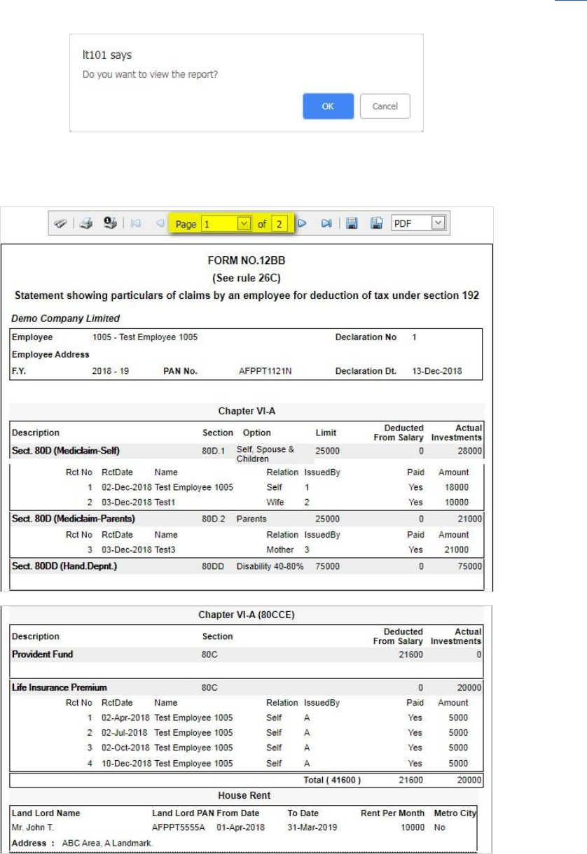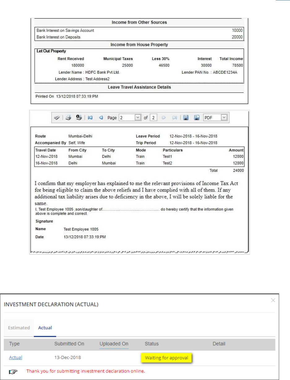 Declaration. Employees can also view their Payslips and Income Tax report.