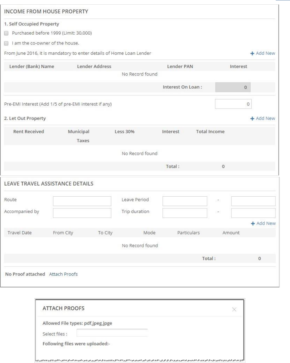 In case, attachment of proofs - bills etc. then user can attach them by selecting the files (i.e. PDF/