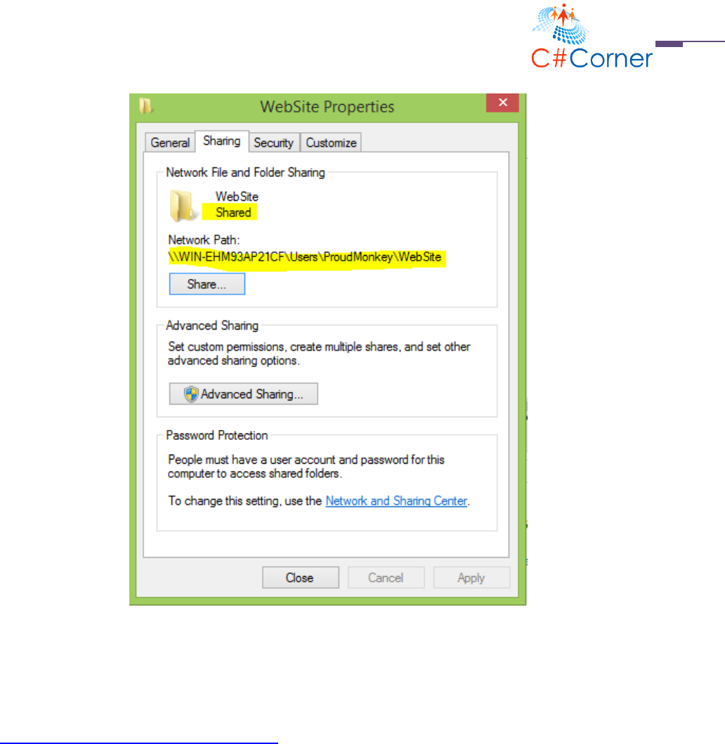 we need to enable “Sharing” so IIS users can have access it. To do this, right-click on