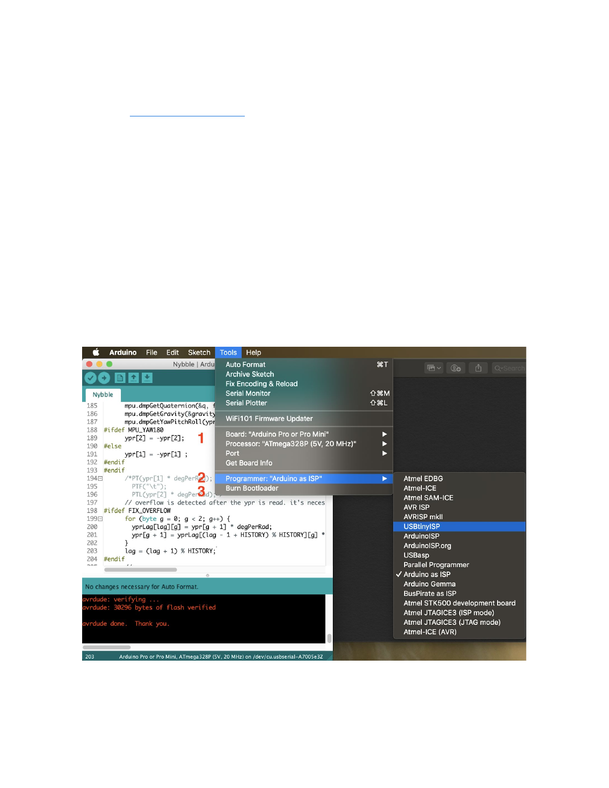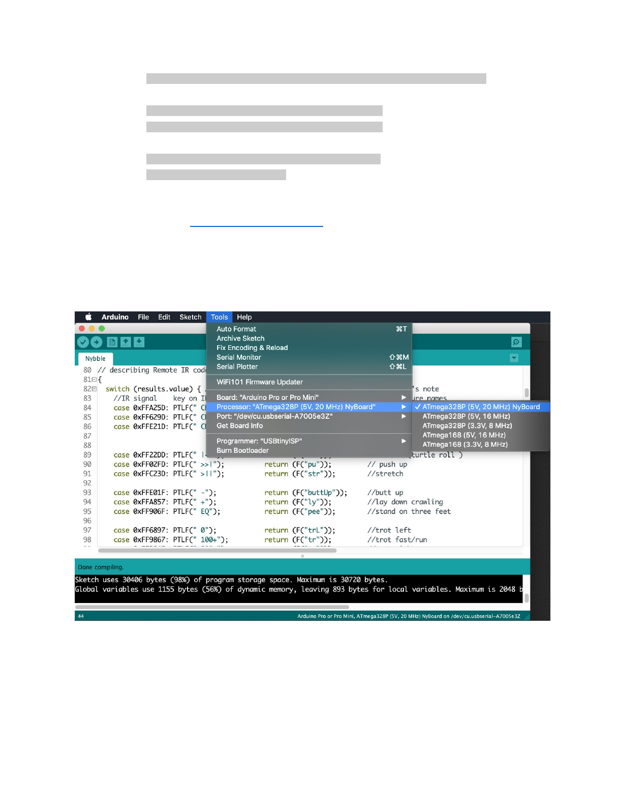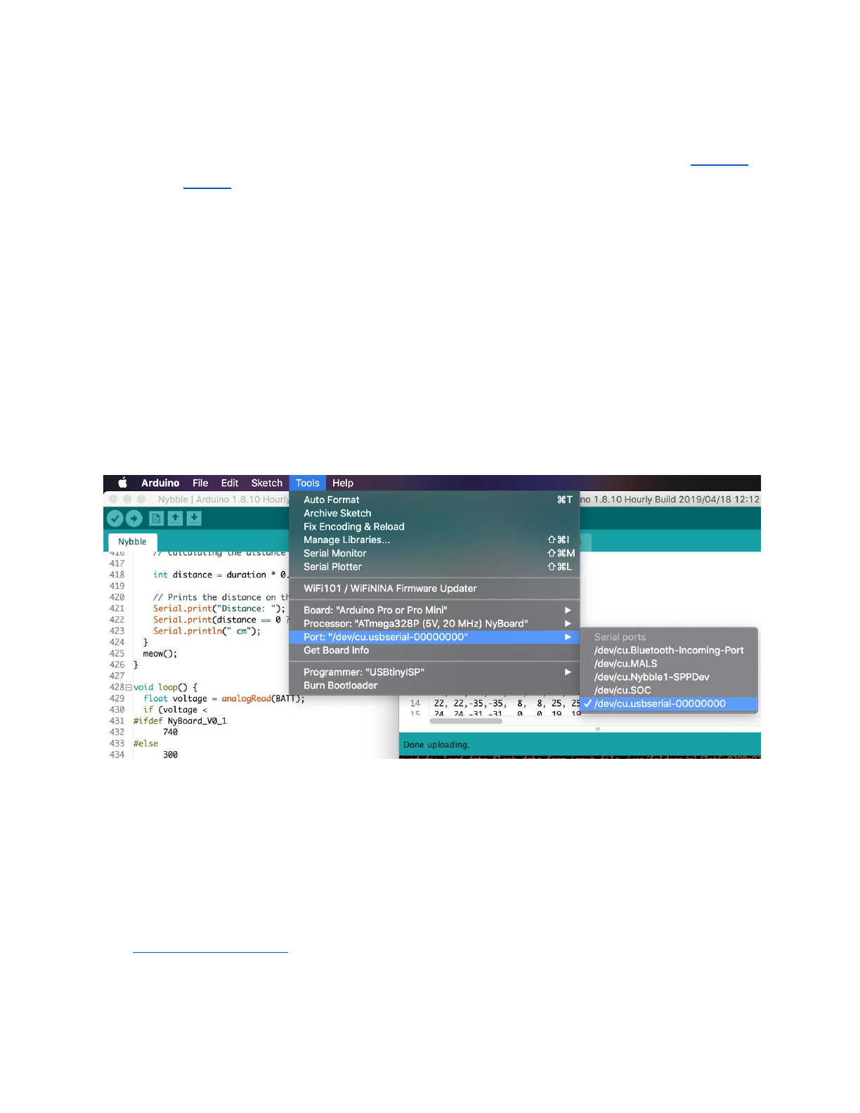 Later, if the uploaded sketch is main sketch Nybble.ino, and if you are using