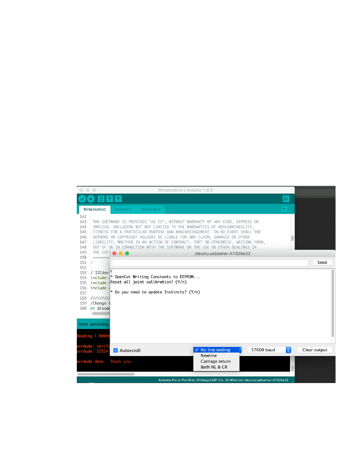 uploading WriteInstinct.ino). You can trigger the new posture by pressing 7 on the