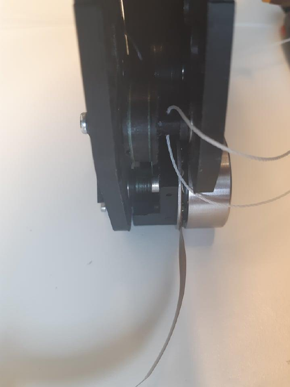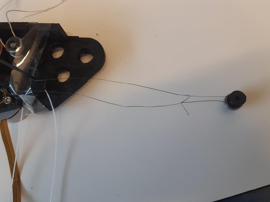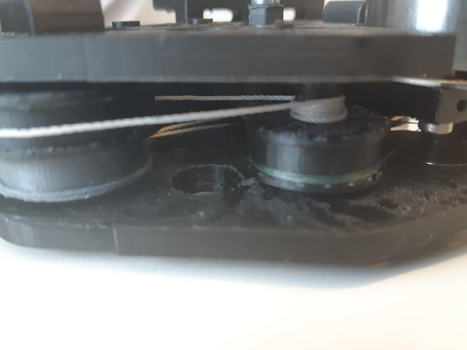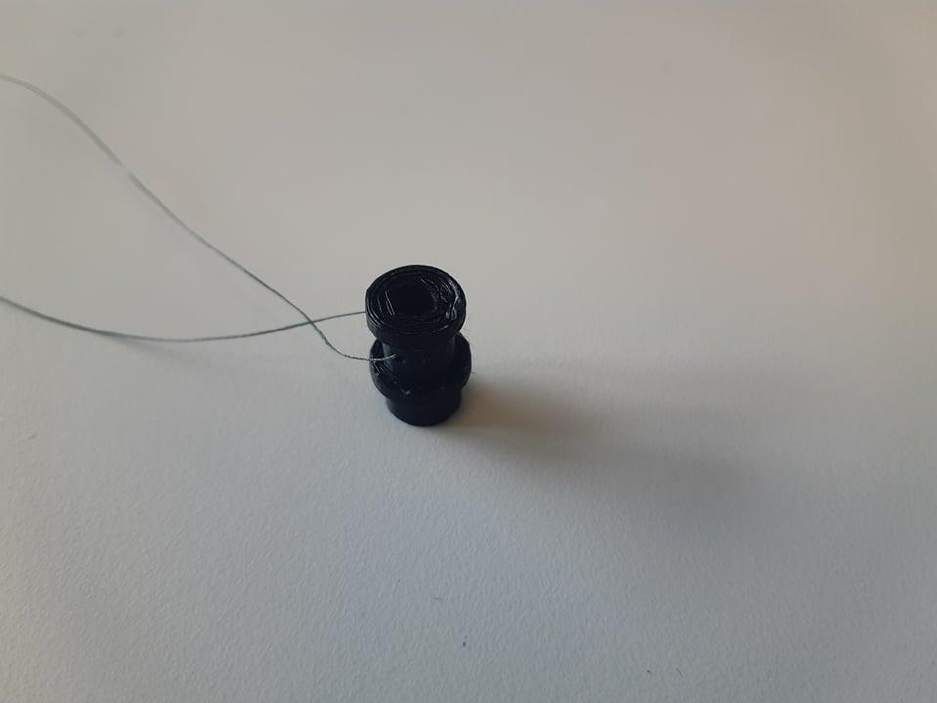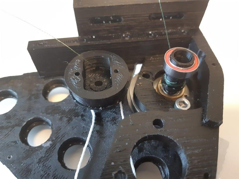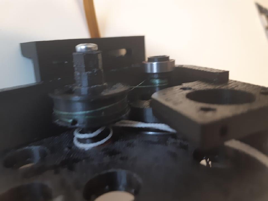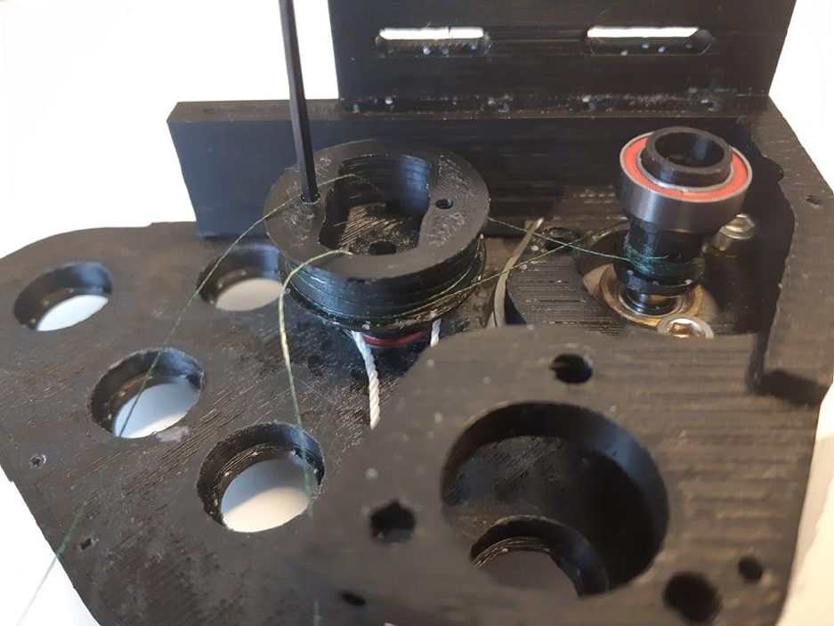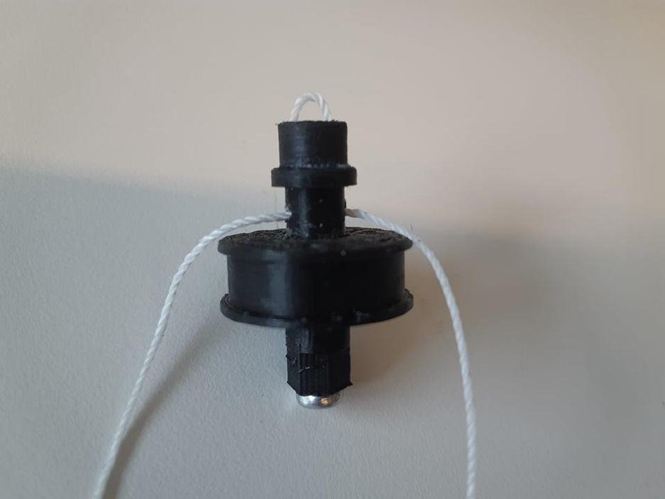 The string is then fastened to the gear spindle top. It needs to be connected in a loop so that the tension
